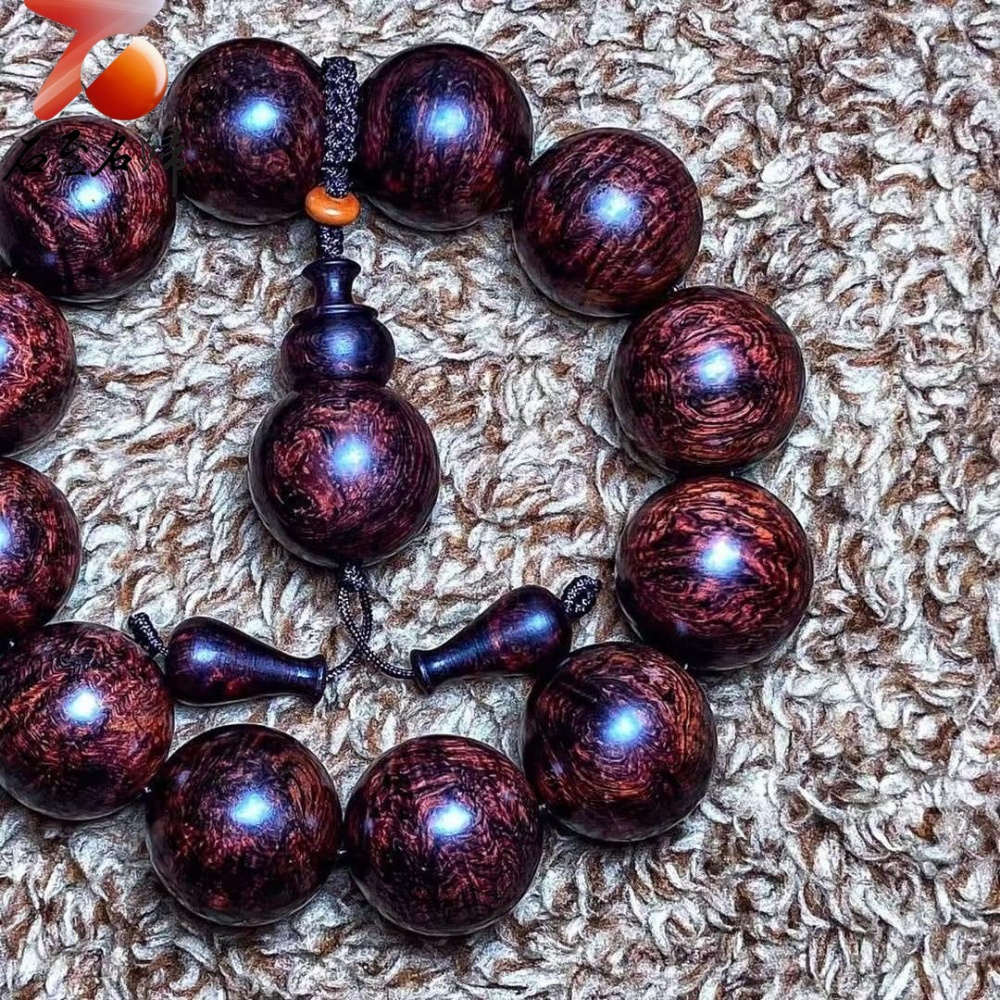 臻藏 海南黃花梨老料 極品七彩水波紋+瘤疤花18mm手珠 重量48.2克