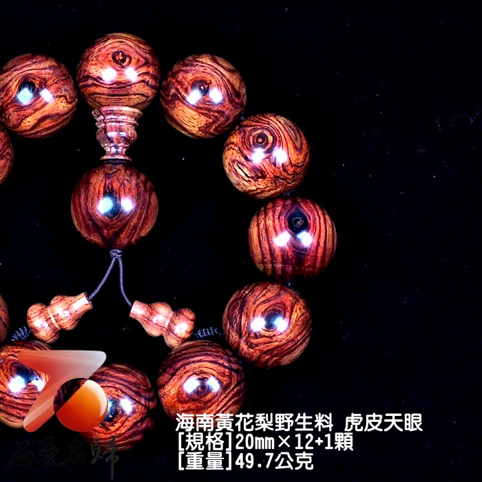 海南黃花梨野生料 虎皮天眼20mm手珠