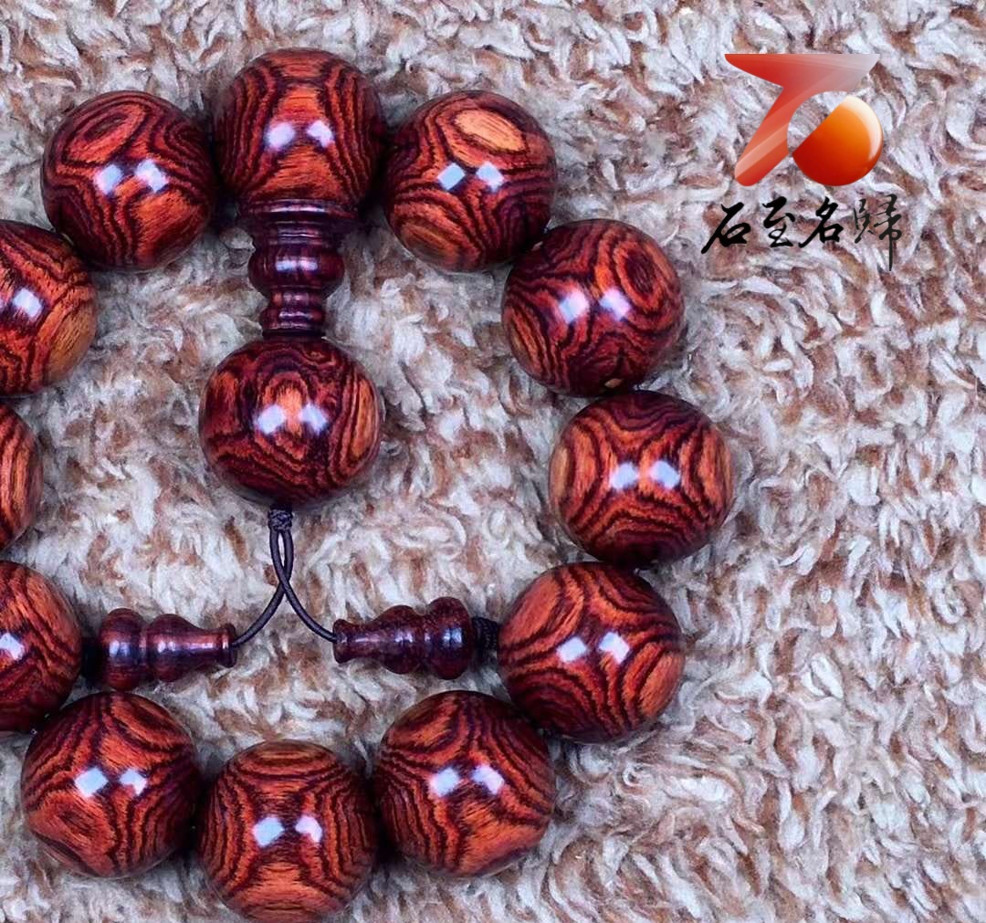 海南黃花梨野生料 頂級虎皮紋對眼鬼臉20mm手珠 重量50.9克