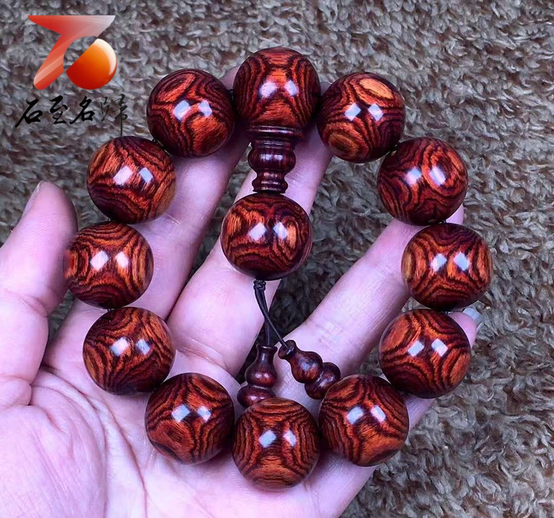 海南黃花梨 極品紫油梨瘤疤王20mm手珠 重量59.4克