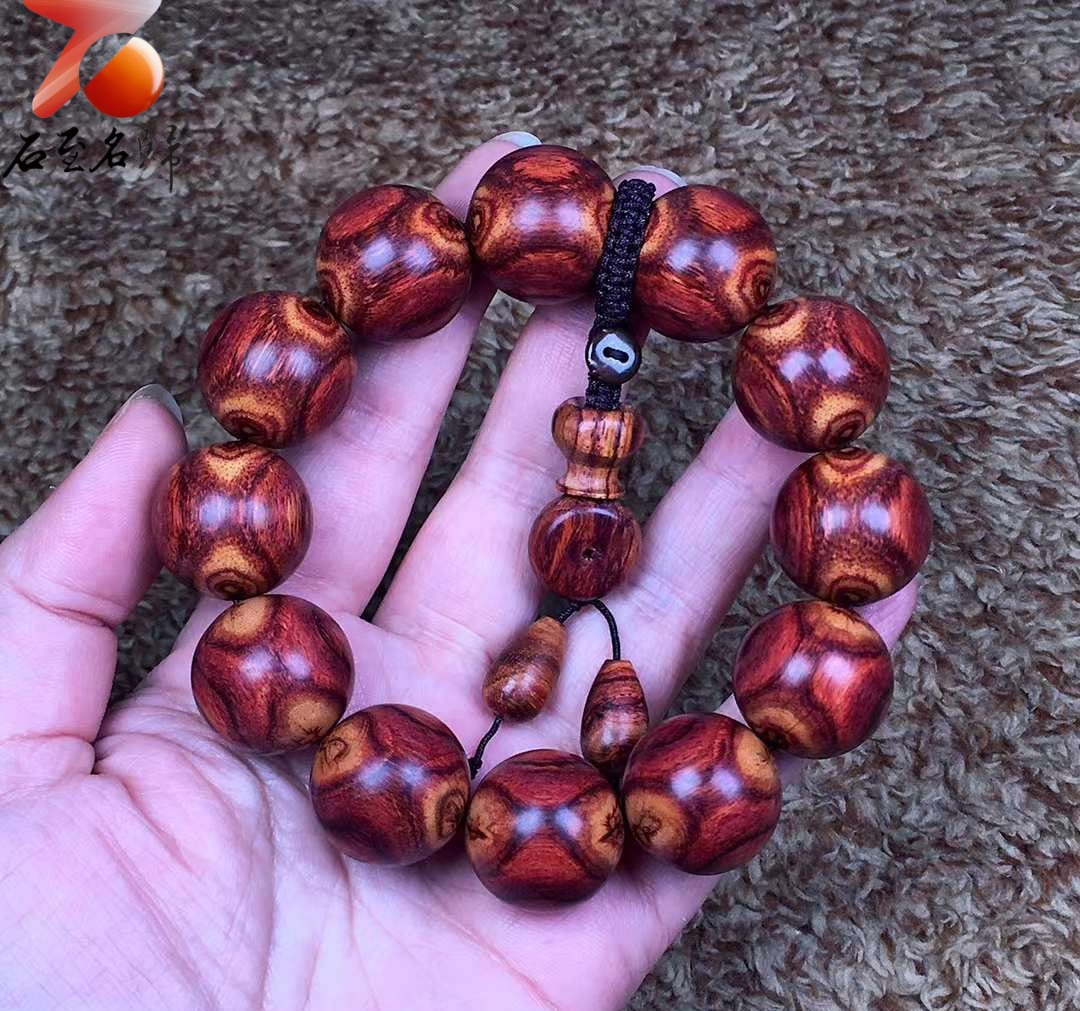 海南黃花梨360度滿瘤疤15mm手珠【至尊王者】重量31.8克