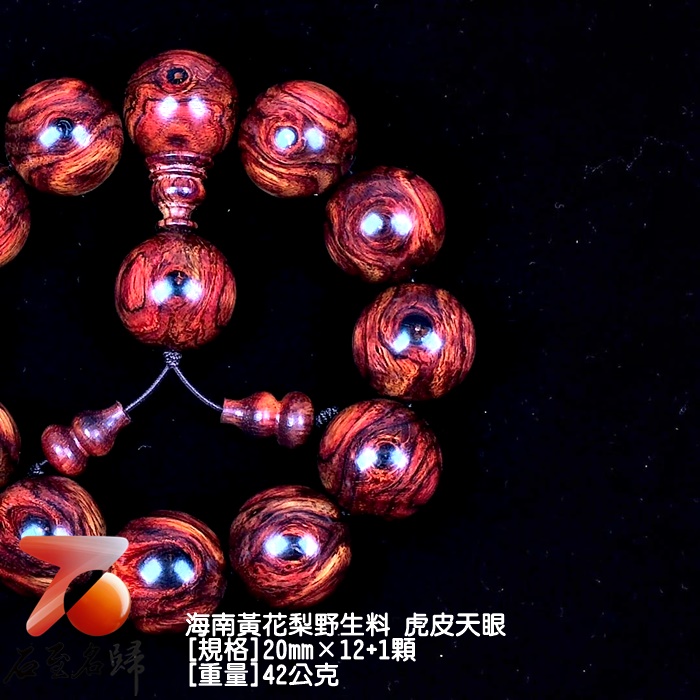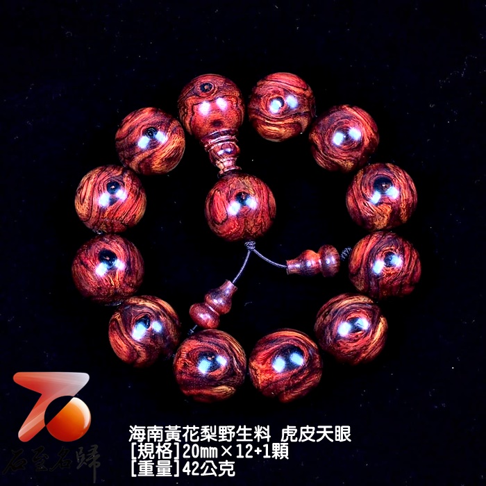 海南黃花梨野生料 20mm虎皮天眼手珠 42公克