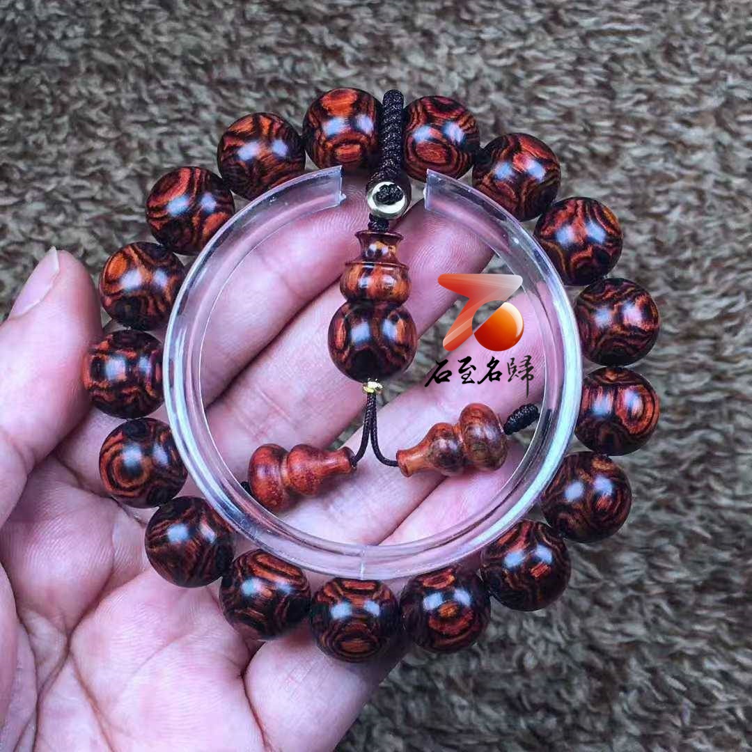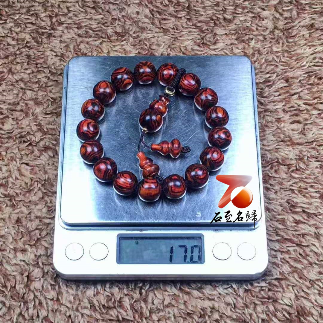 【規格】12mm×17+1顆【重量】17克野生料的靈氣在這串海南黃花梨中展露無遺X紋交錯、鬼臉紋路清晰猶如天成畫卷,充滿靈動與神秘之氣