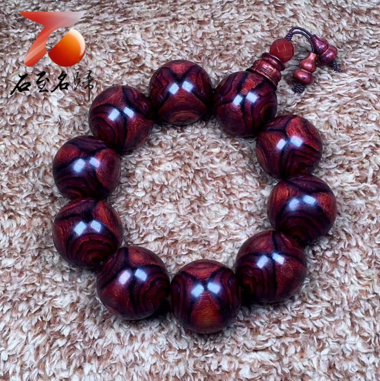 海南黃花梨 極品紫油梨瘤疤王20mm手珠 重量59.4克