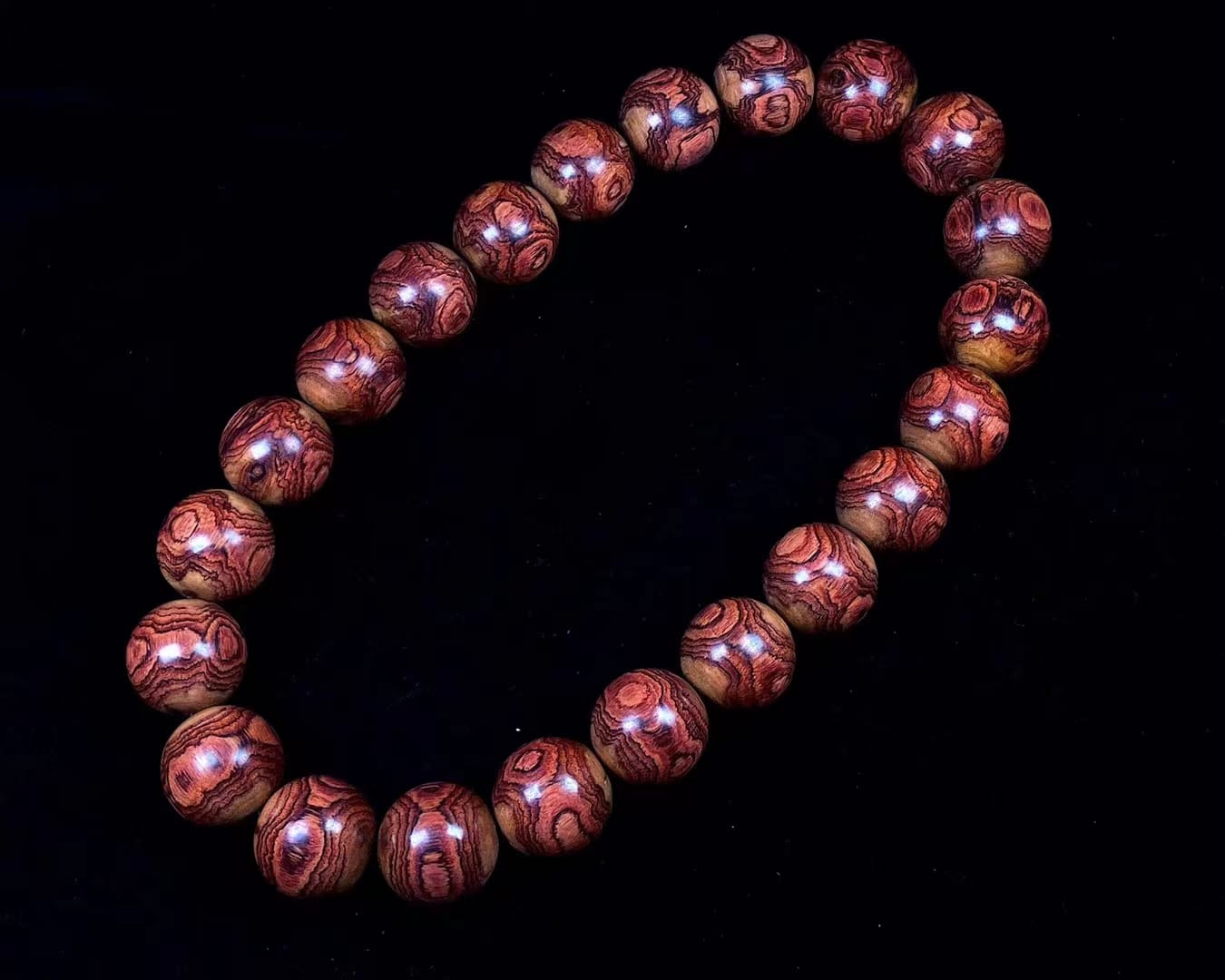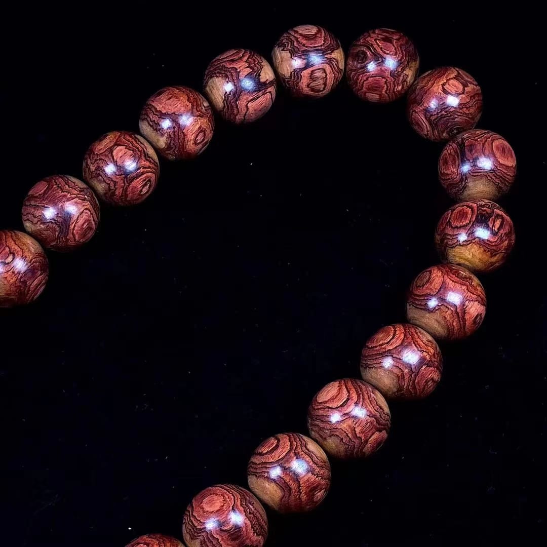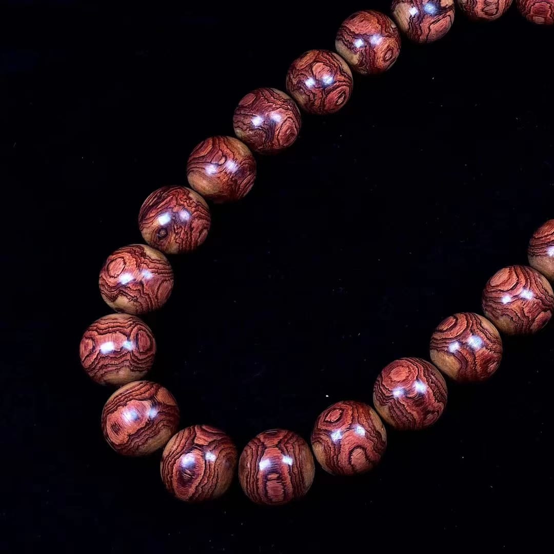 極品海南黃花梨野生料 虎皮X紋對眼鬼臉 19.2mm手珠