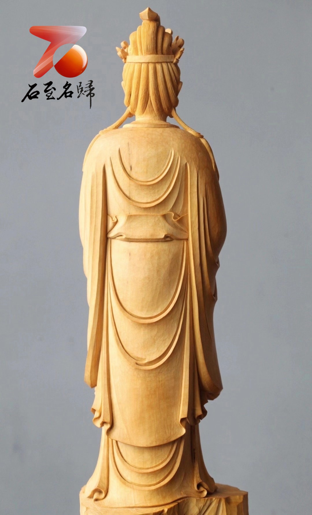 觀音面目慈祥,左手持如意