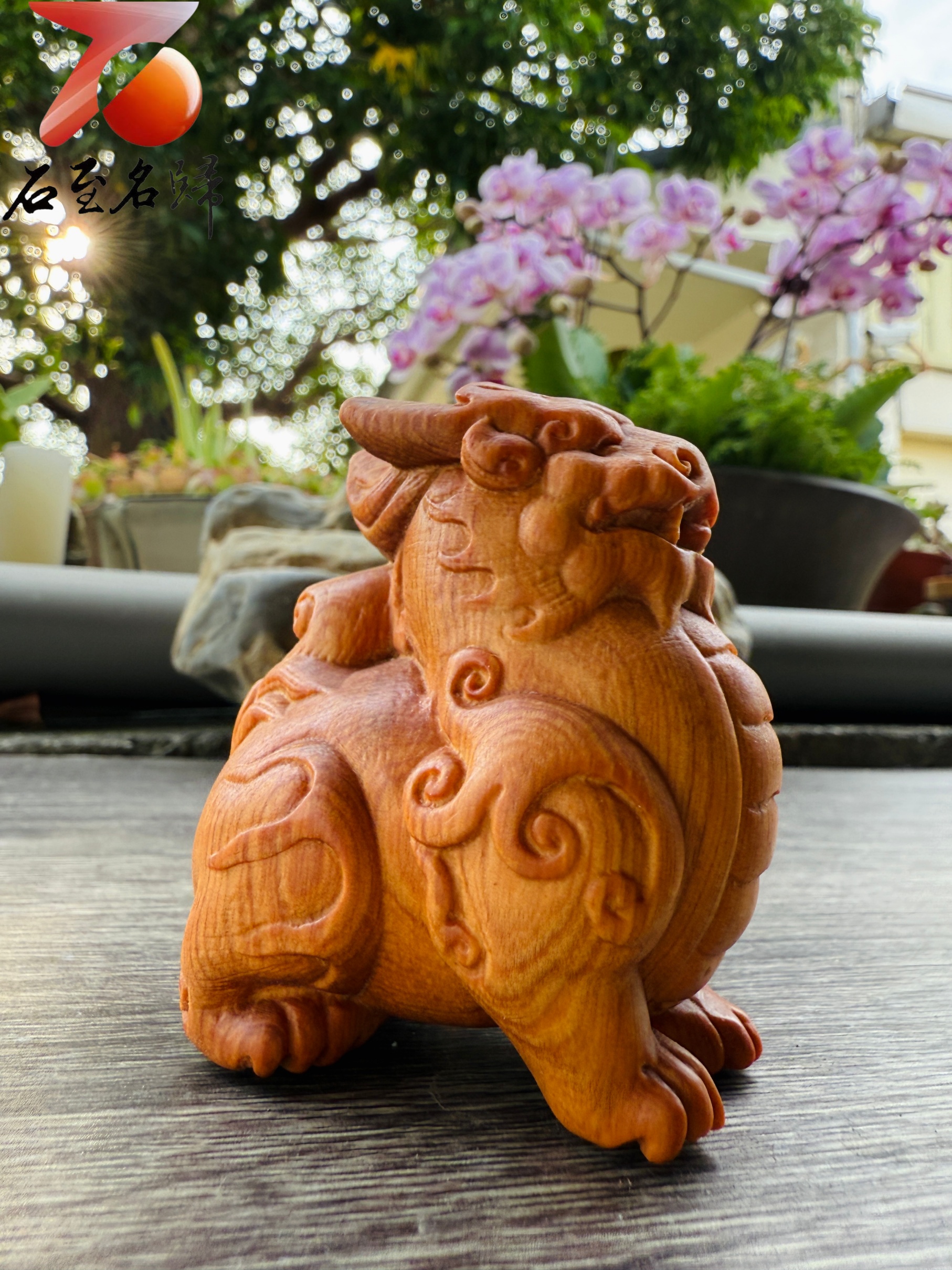 焦糖味重油料城口崖柏老料手把件 《招財貔貅》高6.5公分
