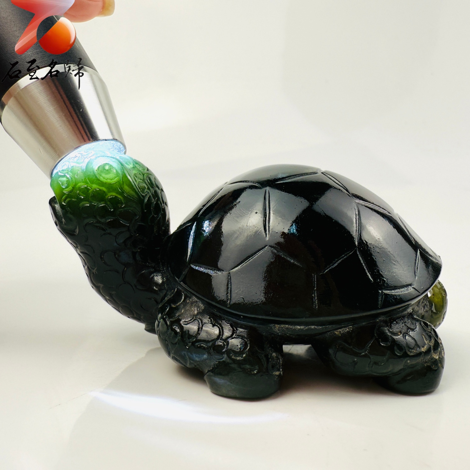 玉化透光丹東石純手工雕烏龜 張志方雕刻家作品【長壽龜】