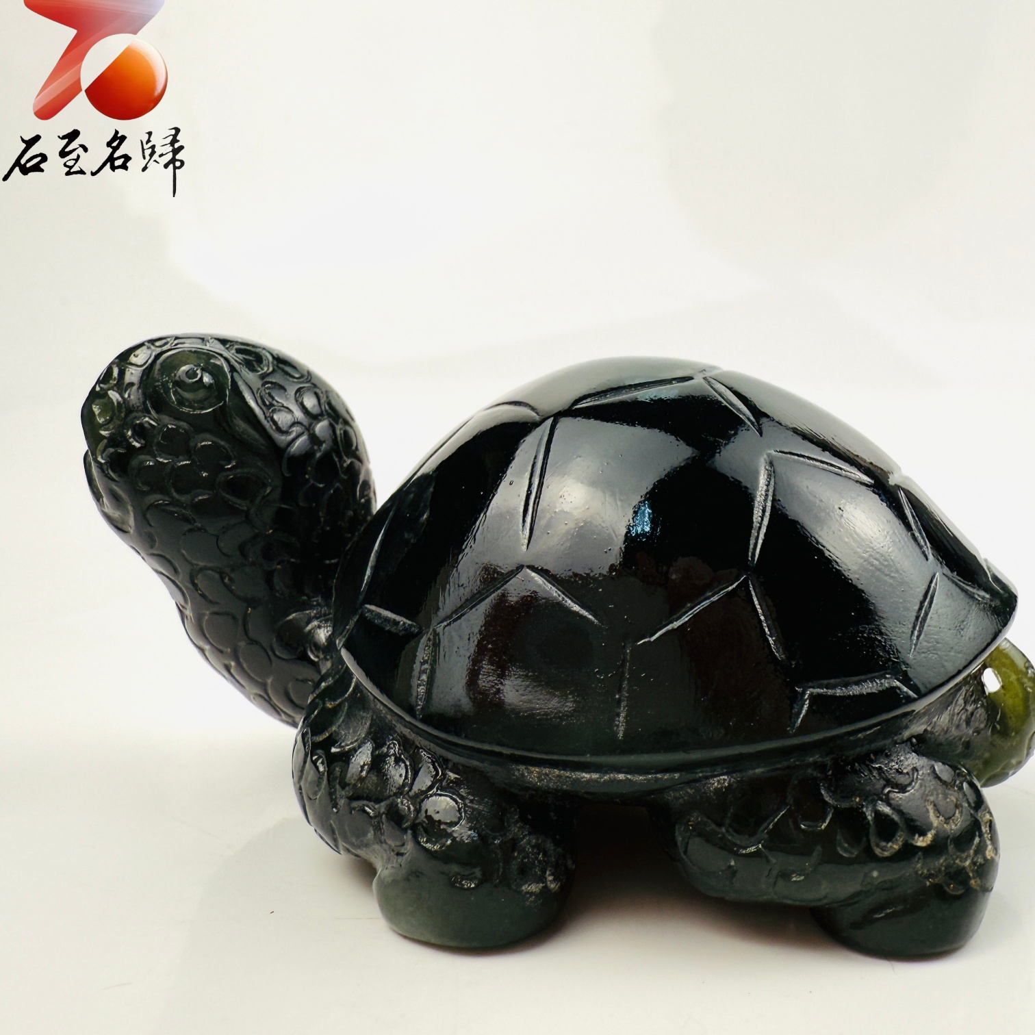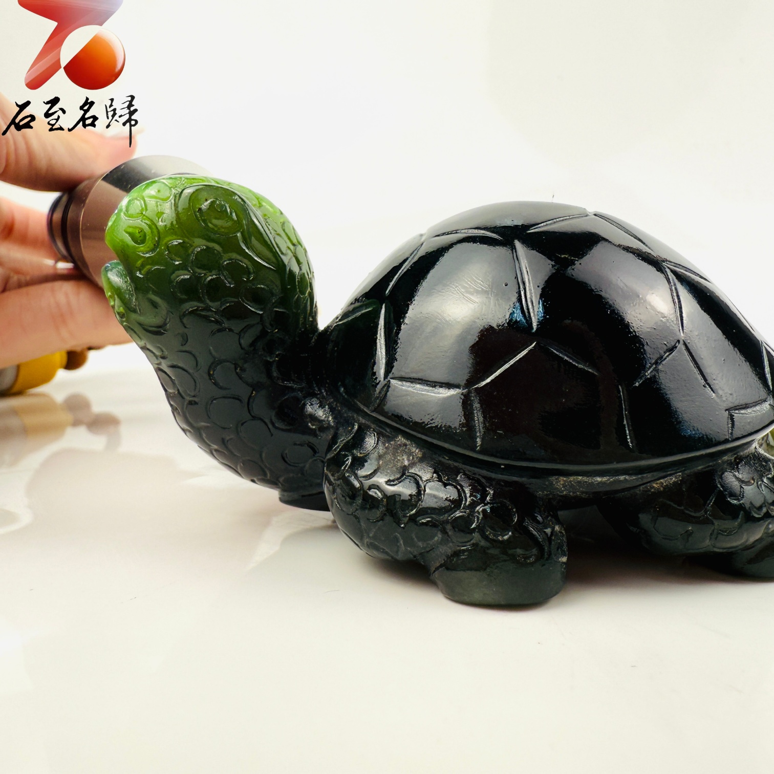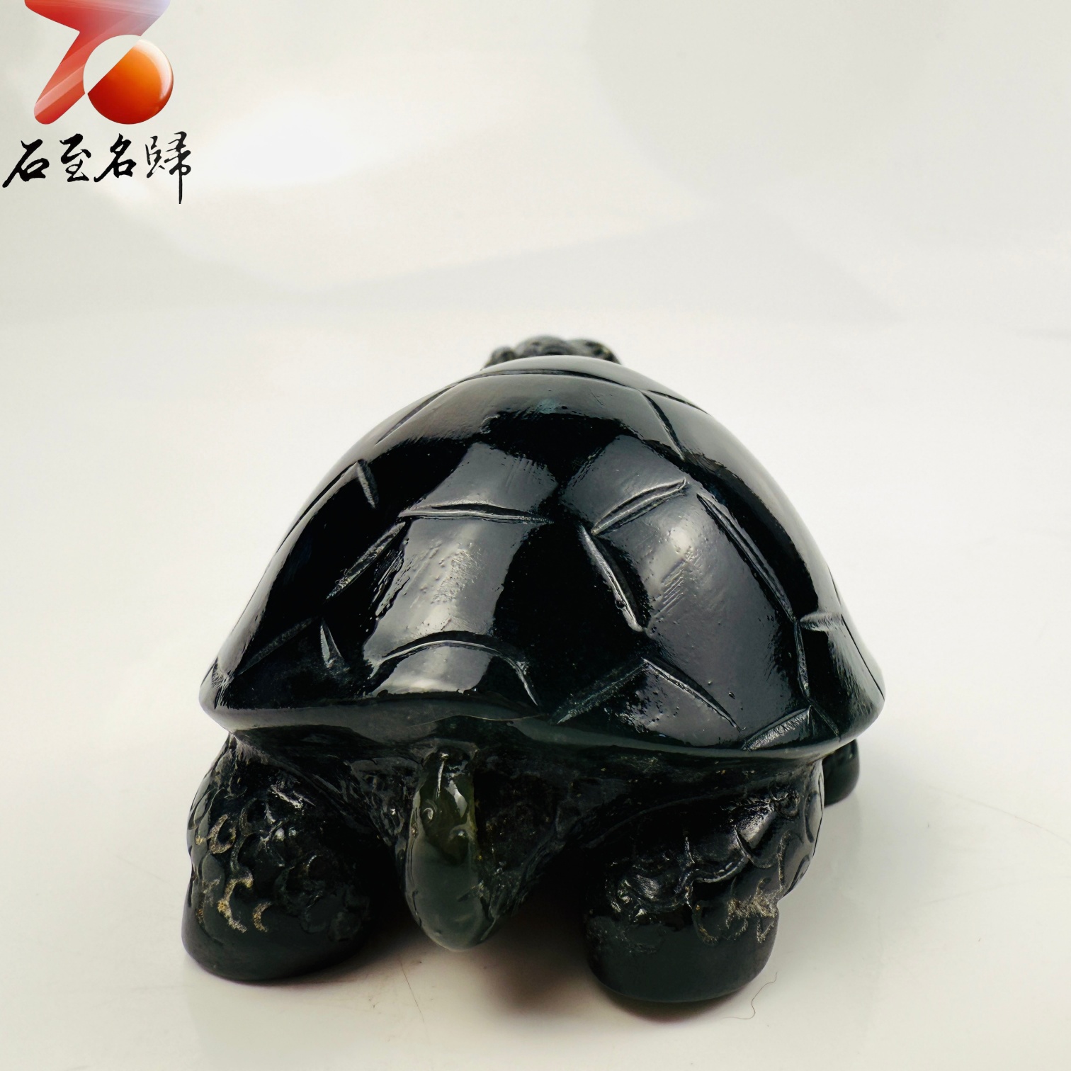 丹東石純手工雕烏龜 張國民雕刻家作品【墨墨守財龜】