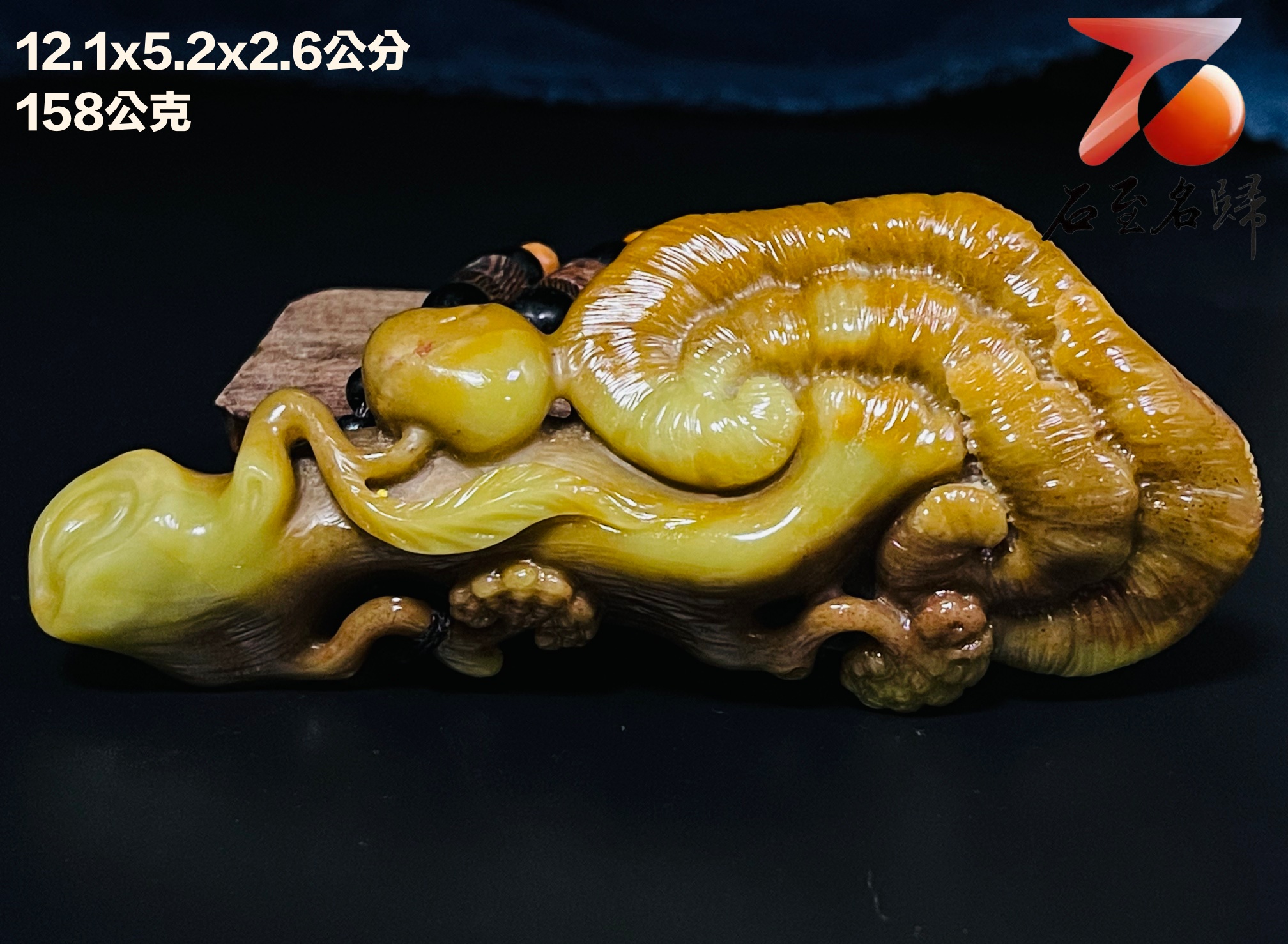 精美壽山月尾綠雕件 老師傅手工雕刻【壽桃靈芝】