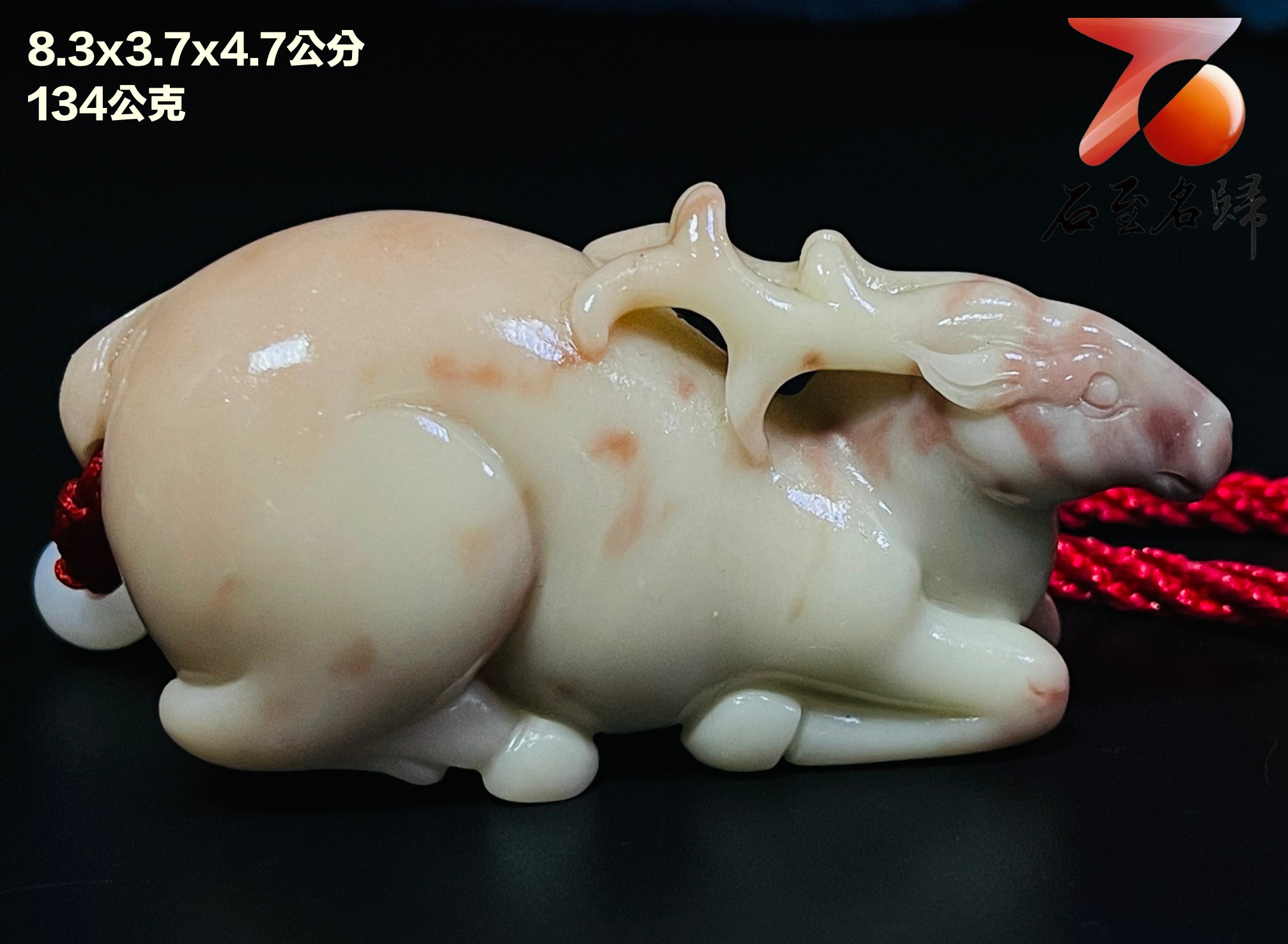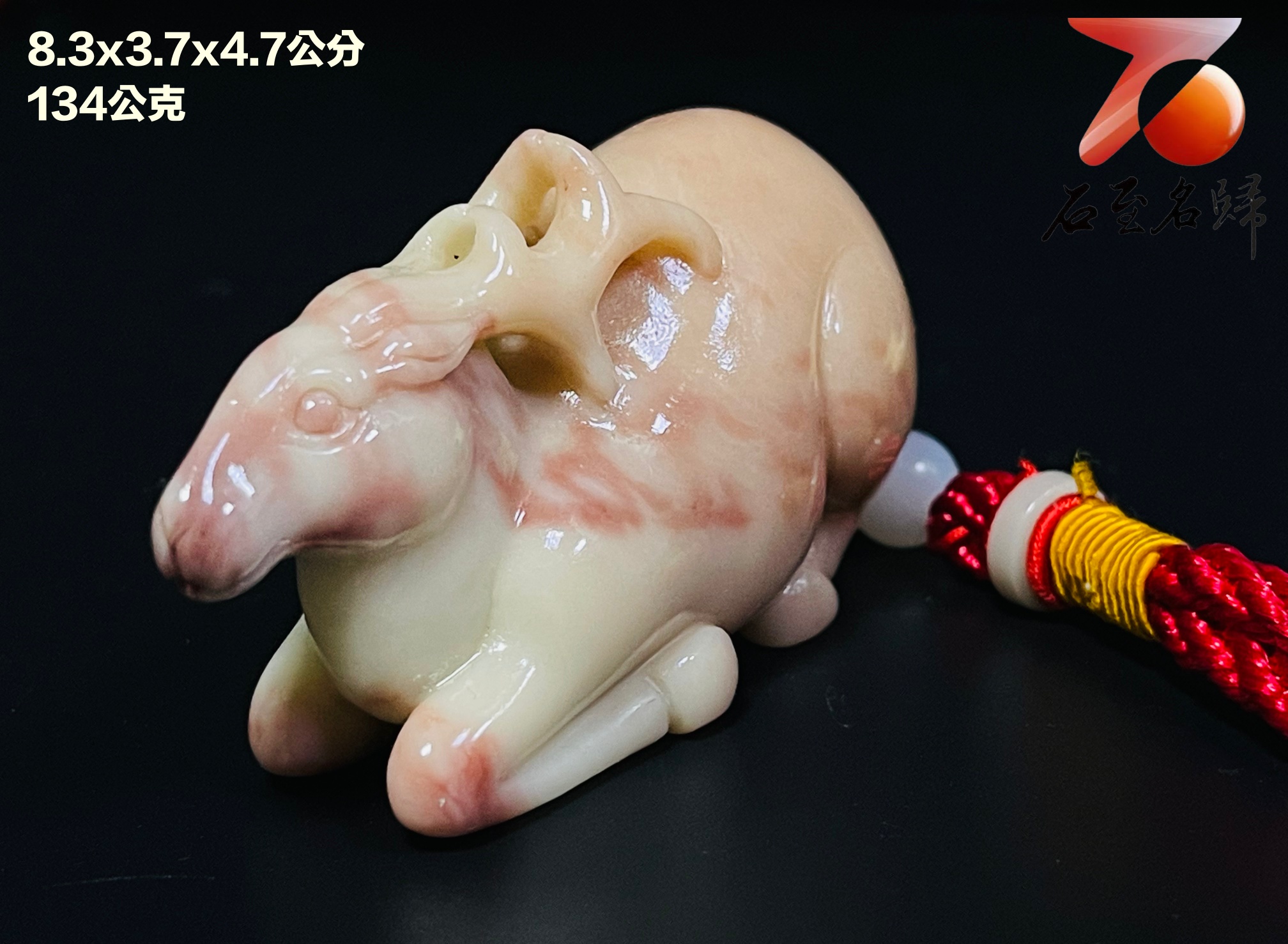 精美高山石 老師傅手工雕刻【財運如紅(虹)牛】