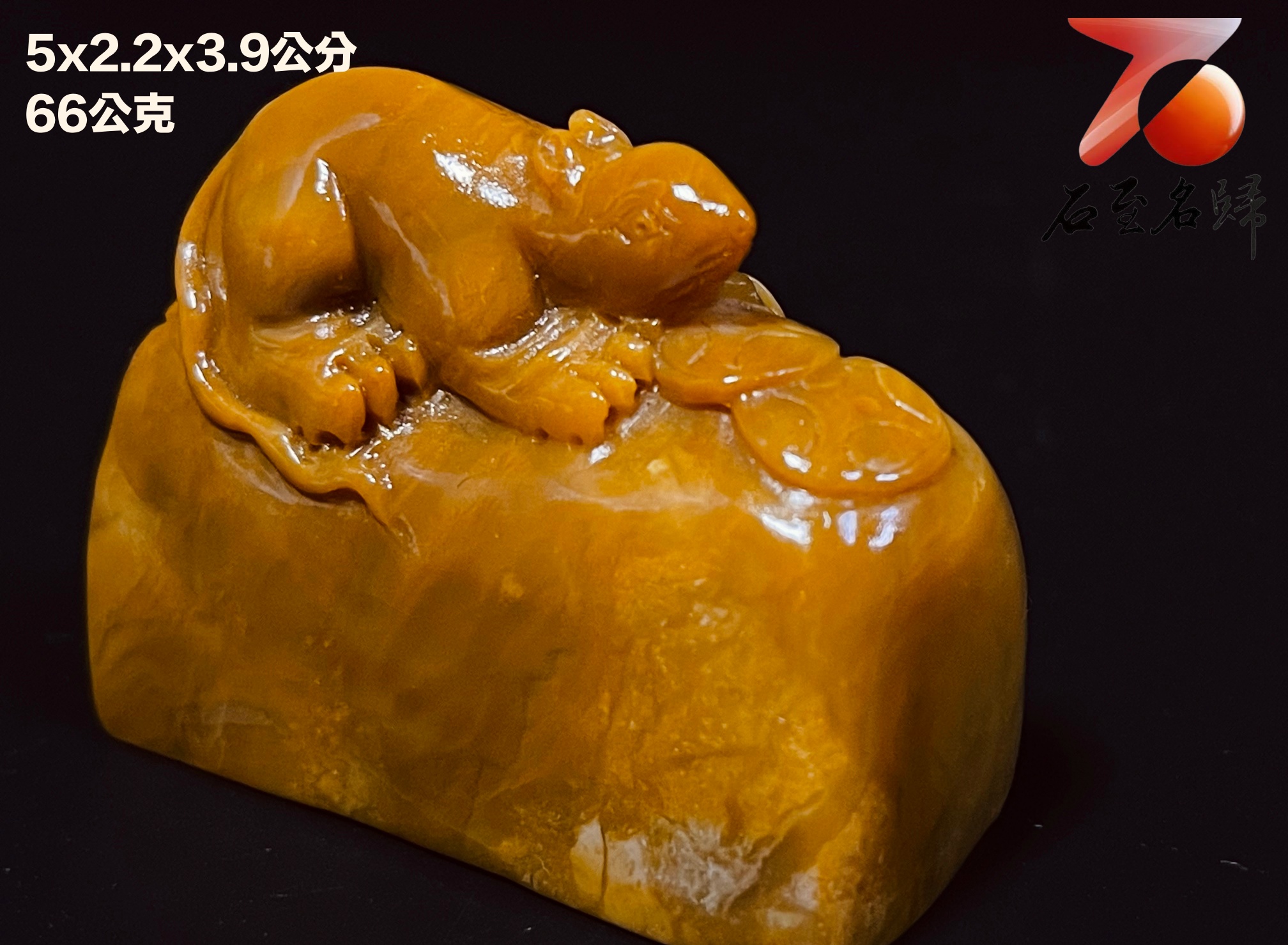 精美田黃石 老師傅手工雕刻【金錢鼠】