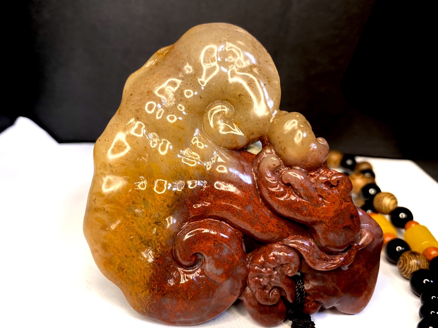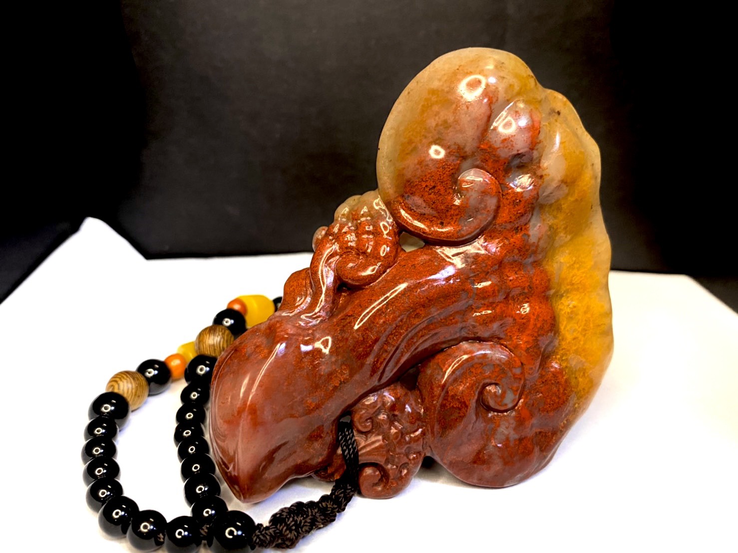 【名稱】老師傅手工 壽山朱砂手把件【長壽靈芝】