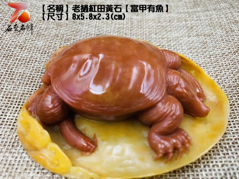 寮國紅心田黃 八方來財 橫財就手 老師傅手工雕手把件