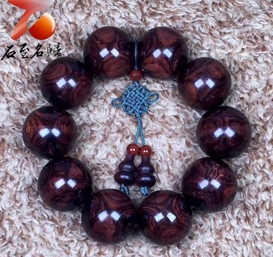 臻品 海南黃花梨絕品紫油梨沉水老料25mm手珠 重量97.1克