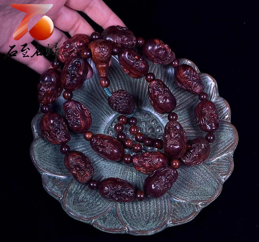 海南黃花梨野生料20mm【京劇臉譜】雙面滿紋 一串難求 重量44.7g