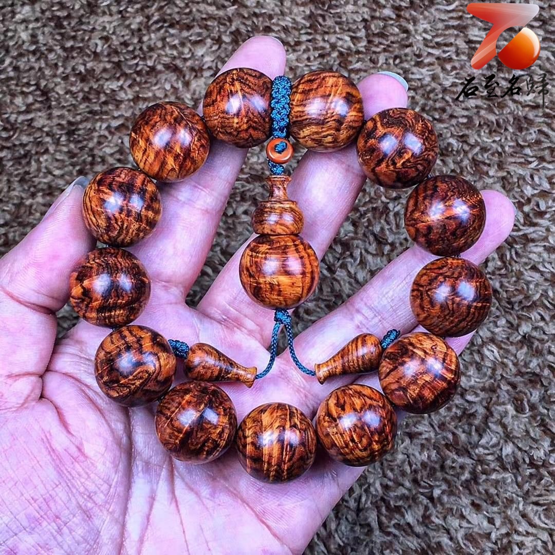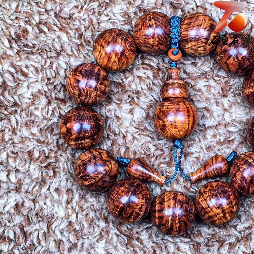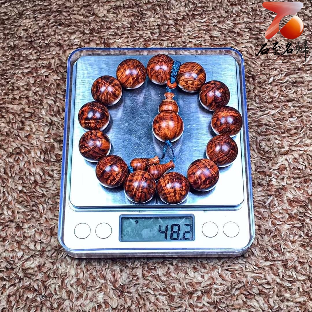 臻藏 海南黃花梨老料 極品七彩水波紋+瘤疤花18mm手珠 重量48.2克
