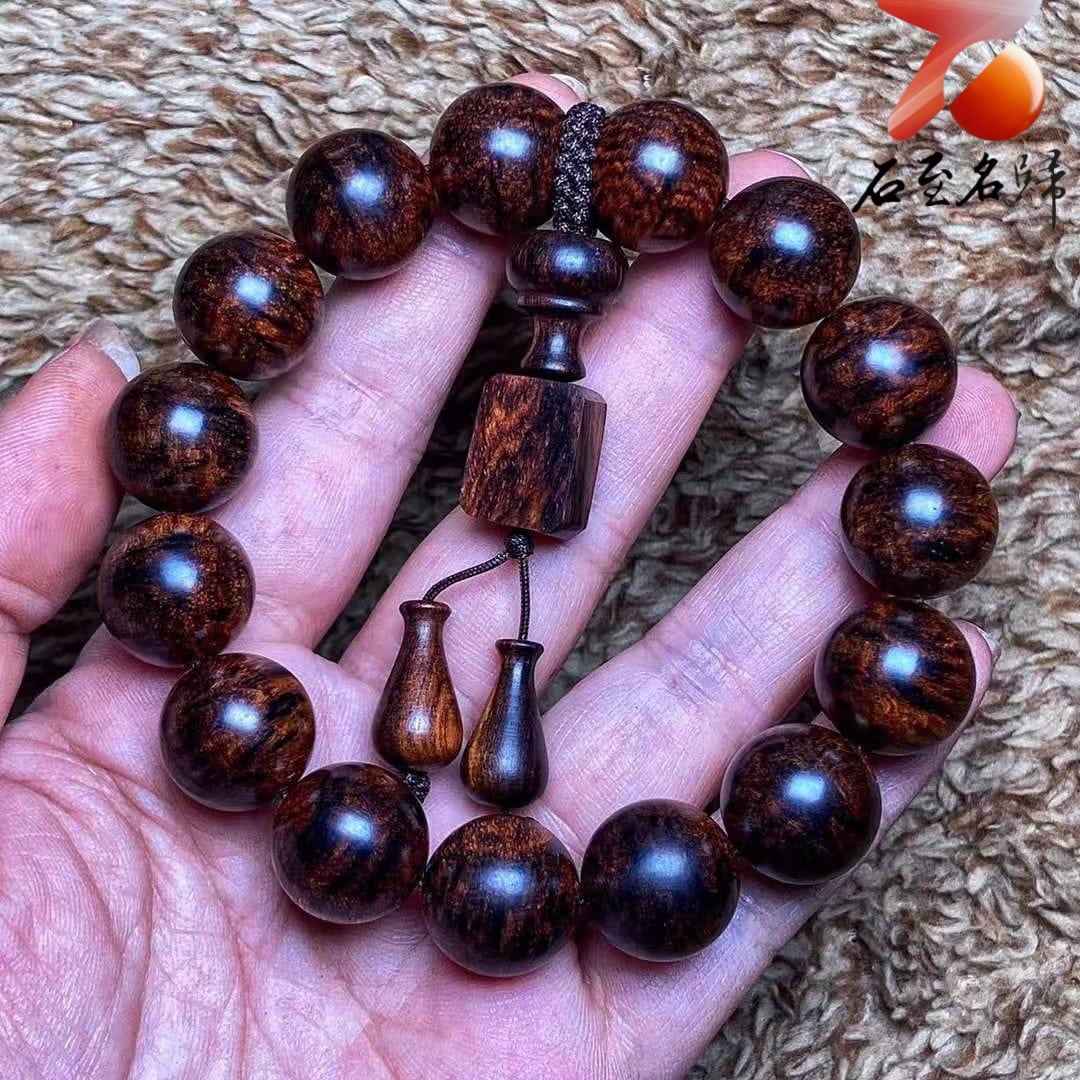 海南黃花梨360度滿瘤疤15mm手珠【至尊王者】重量31.8克