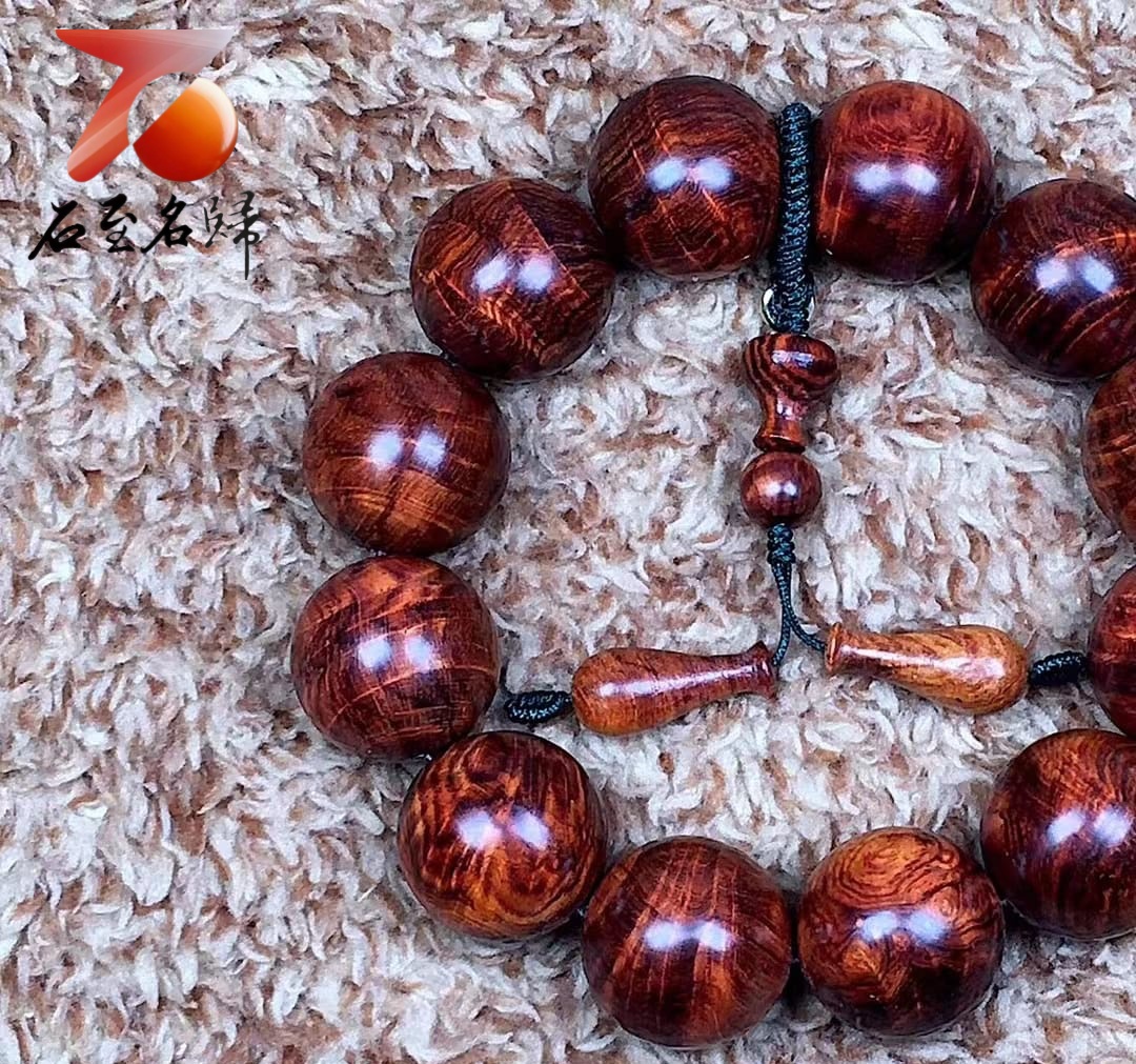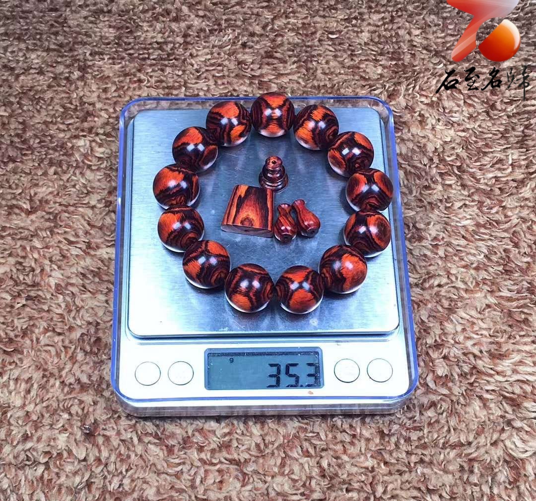 臻藏 海南黃花梨老料 極品七彩水波紋+瘤疤花18mm手珠 重量48.2克