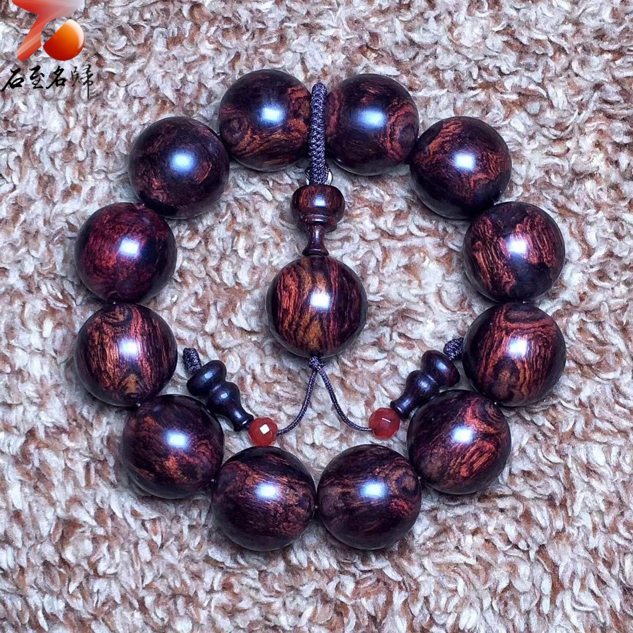 鼎藏 海南黃花梨絕品紫油梨沉水老料20mm手珠 重量64.9克
