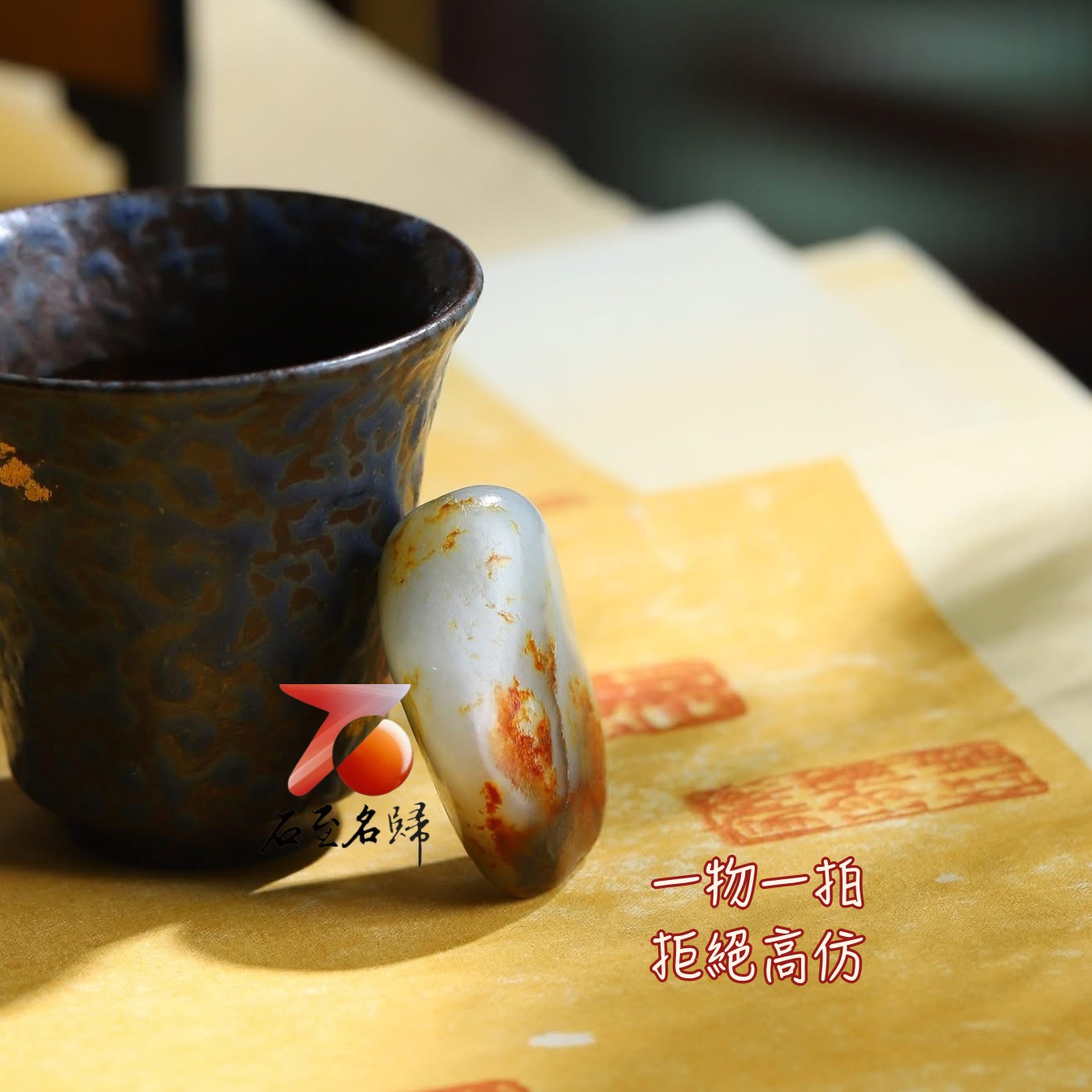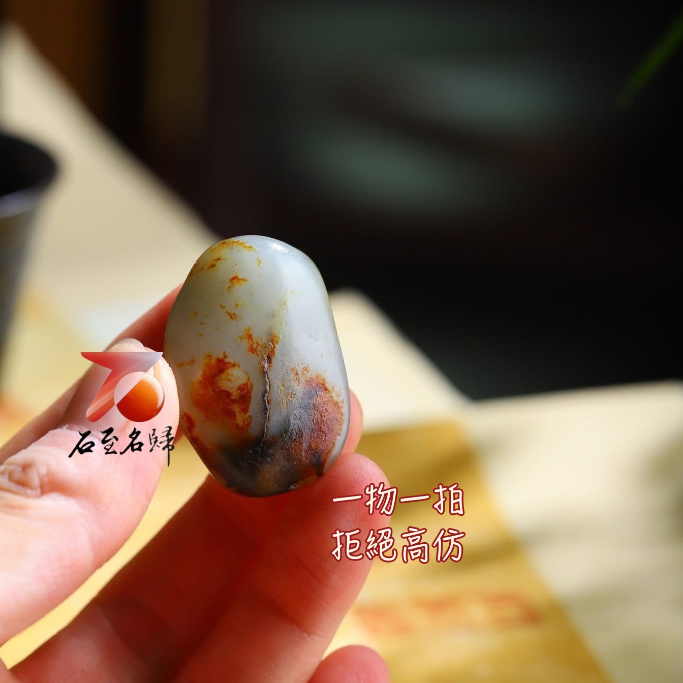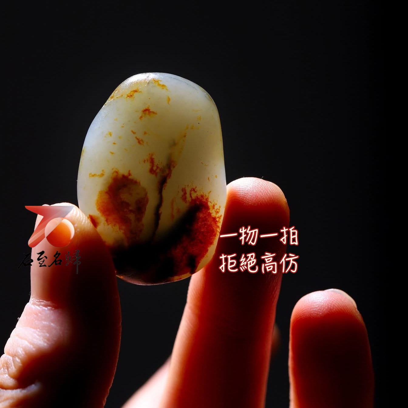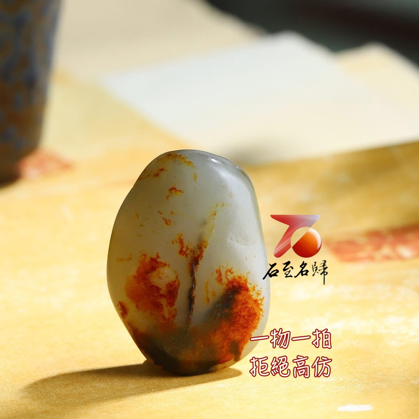 象形和田玉籽料原石【江山如畫】聚紅皮形成的天然畫布