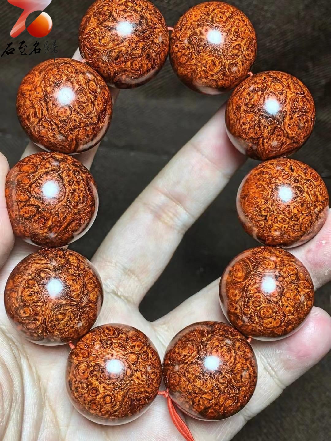 印度小葉紫檀 瘤疤小螺旋金星18mm手珠