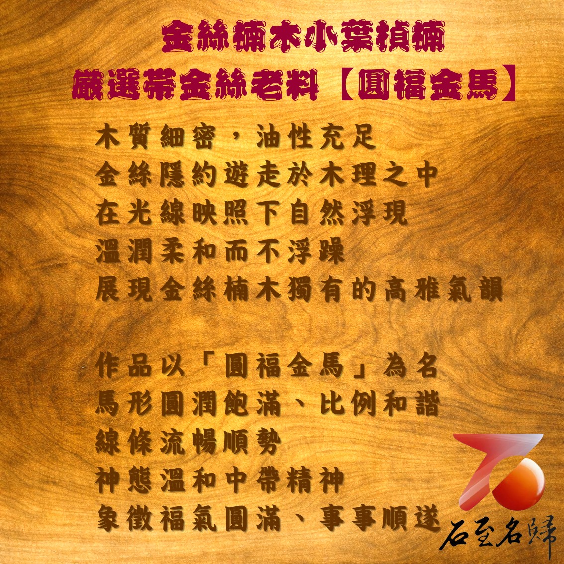金絲楠木小葉楨楠|嚴選帶金絲老料【圓福金馬】馬年開運擺件