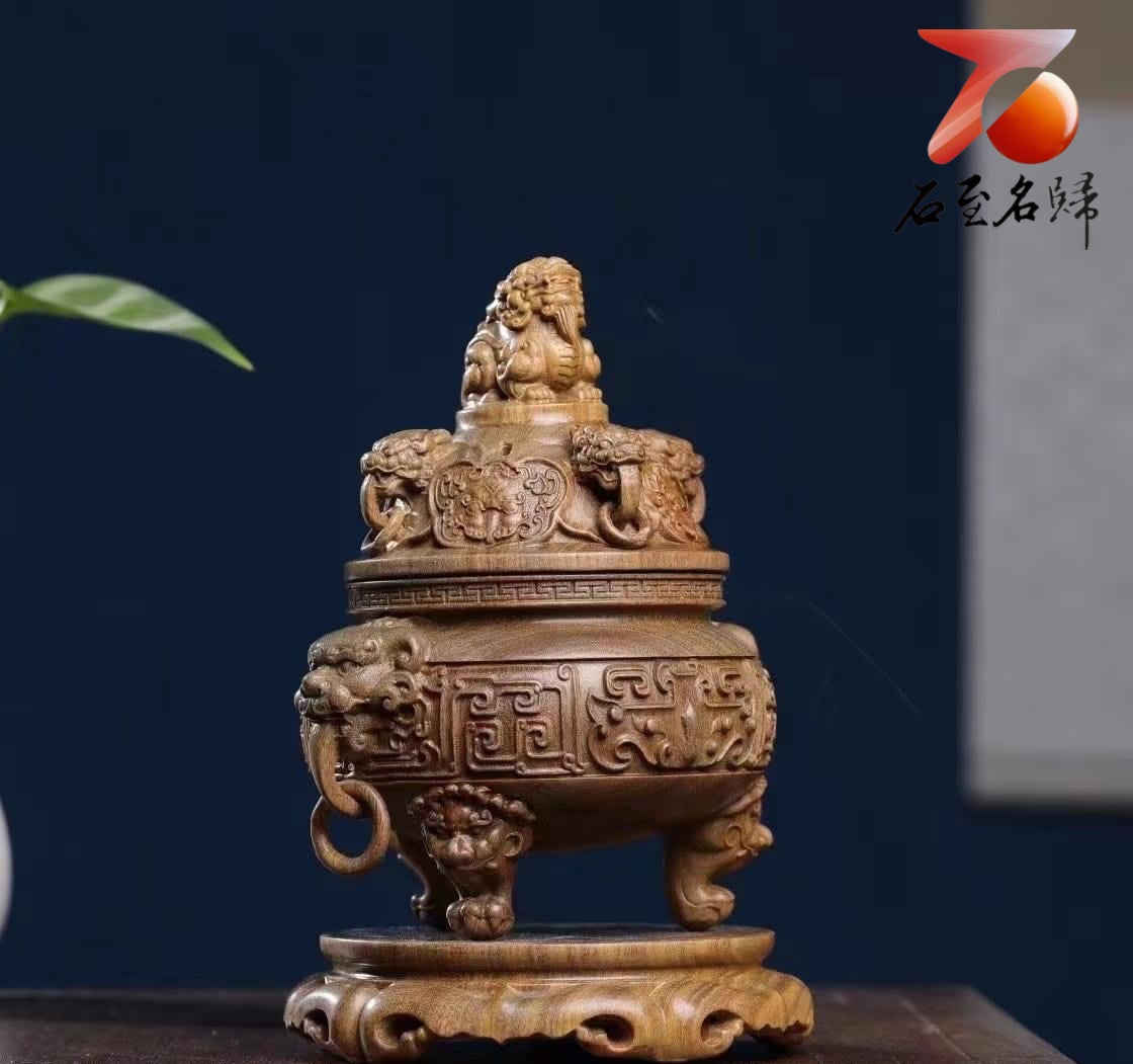 金絲楠木小葉楨楠盤香爐 直徑13公分