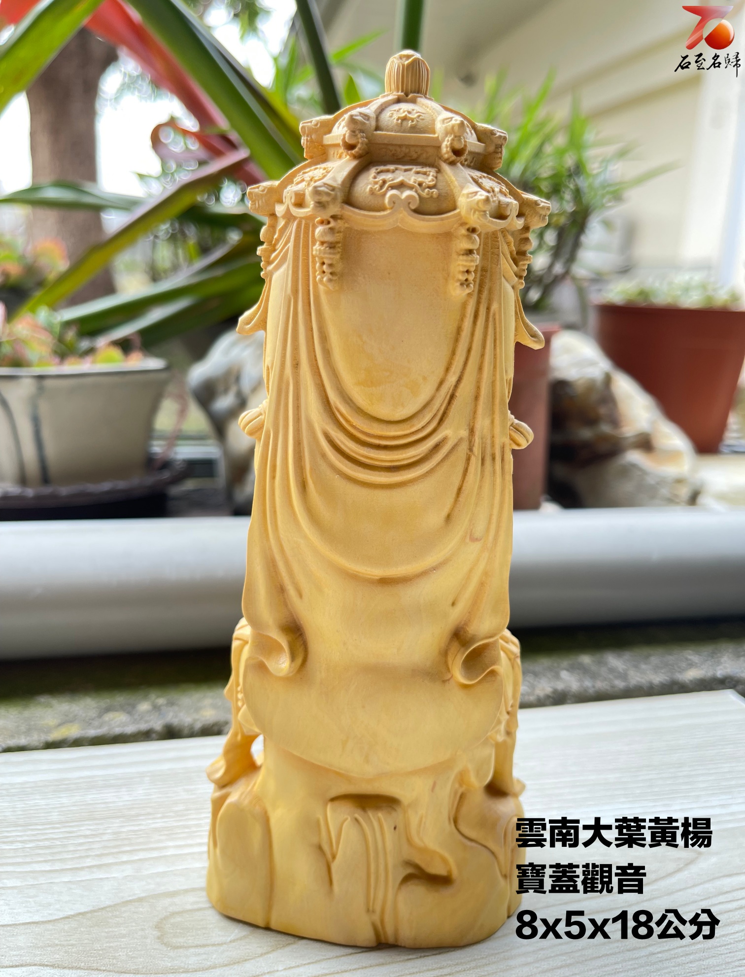 雲南大葉黃楊木精雕作品【寶蓋觀音】
