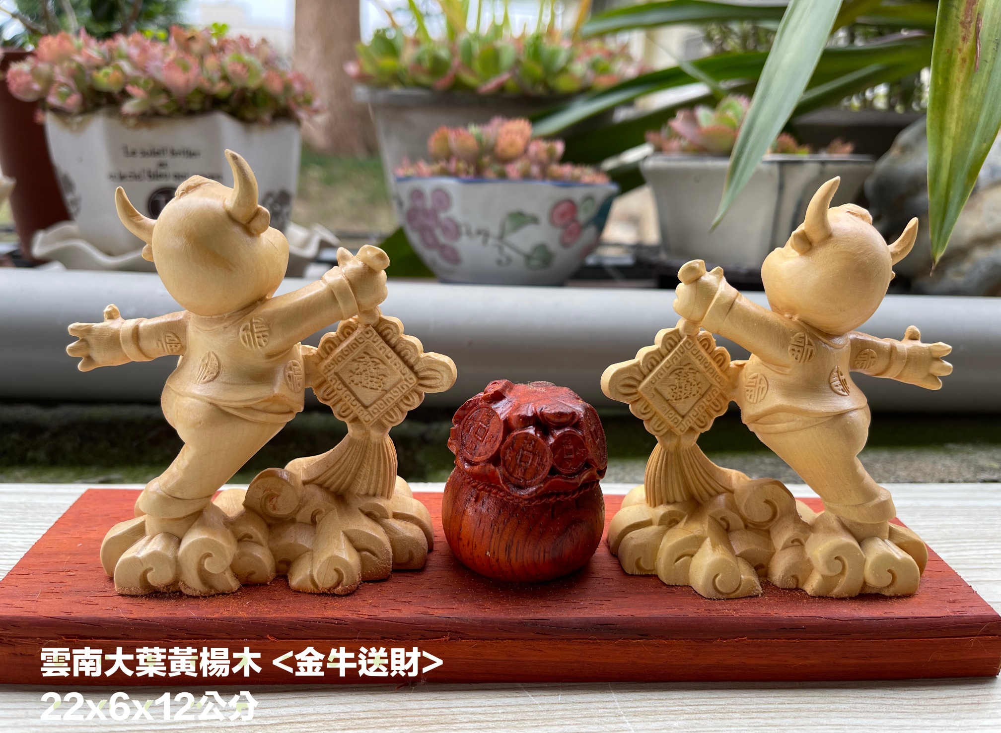 雲南大葉黃楊木+尚比亞紫檀 精雕作品【金牛送福】