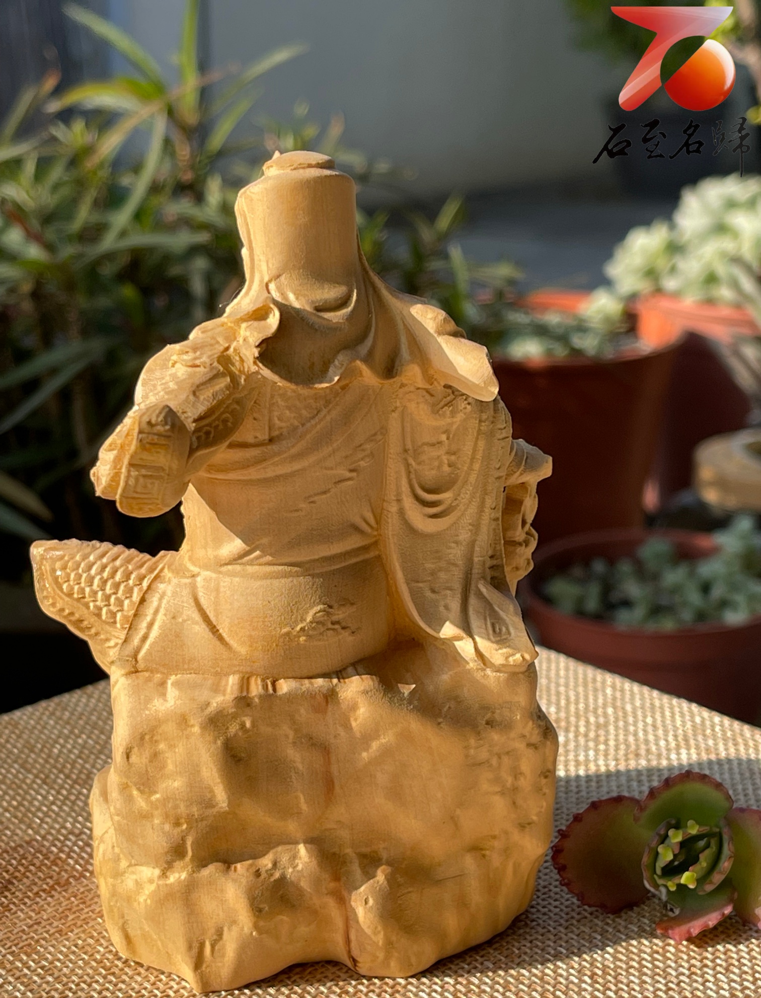 雲南大黃楊木精雕作品【坐關公】