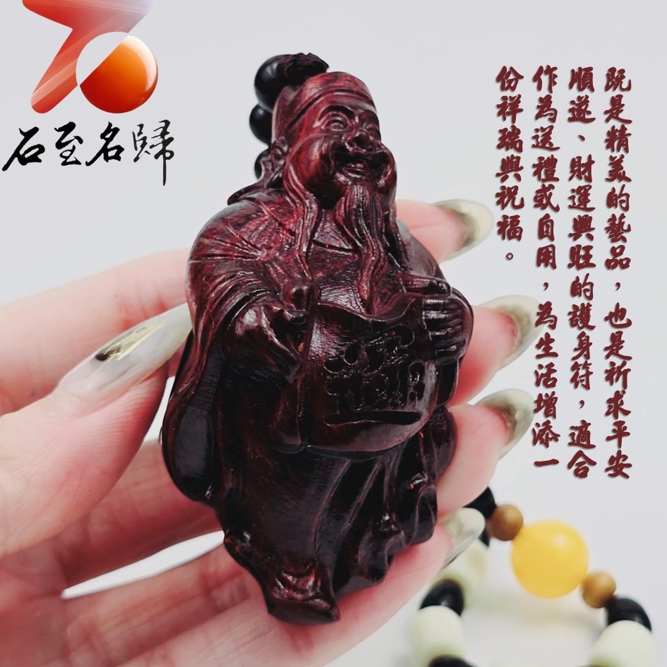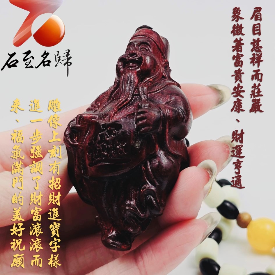 非洲紅木吊飾/車掛件【招財進寶財神爺】 高8公分