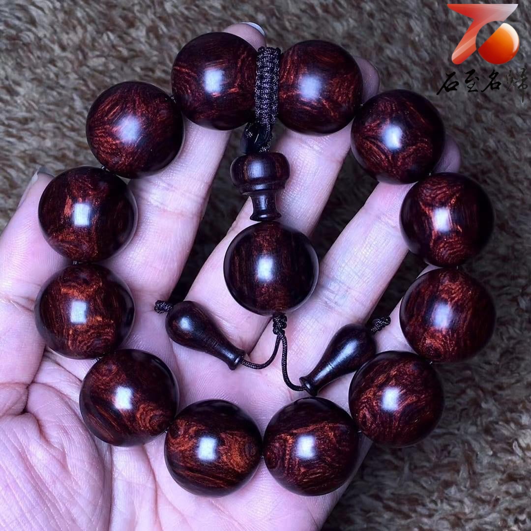 臻藏 海南黃花梨老料 芝麻花精品25mm手珠 重量87.4克