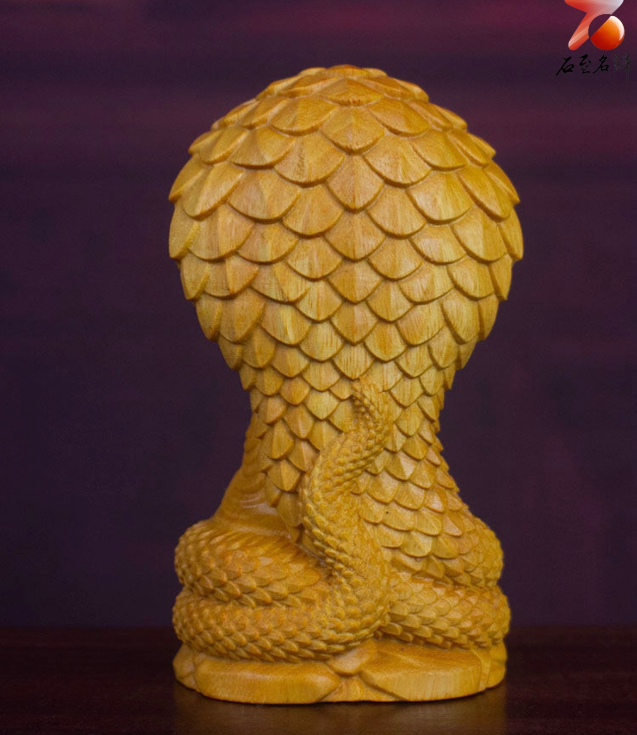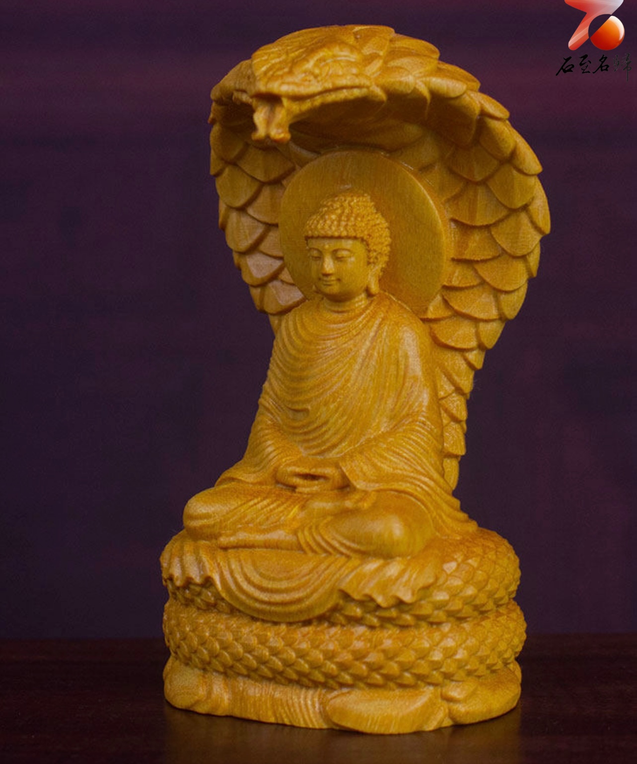 黃楊木雕件【靈蛇釋迦牟尼佛】高12.5公分