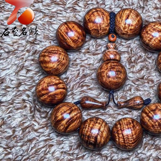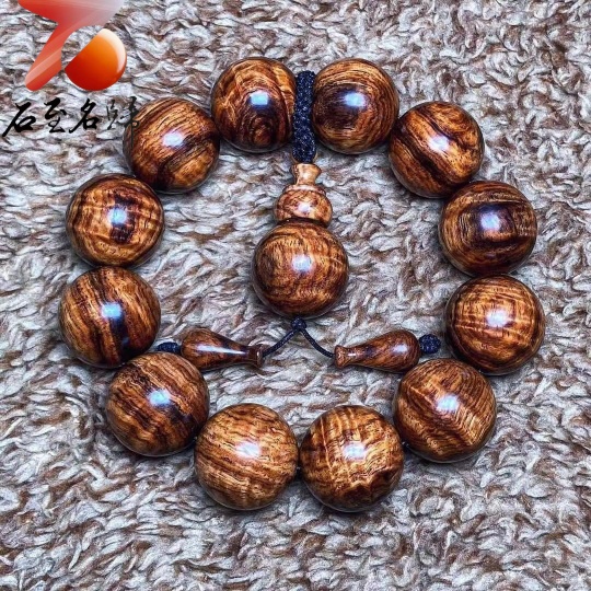 極品海南黃花梨野生料 虎皮X紋對眼鬼臉 19.2mm手珠