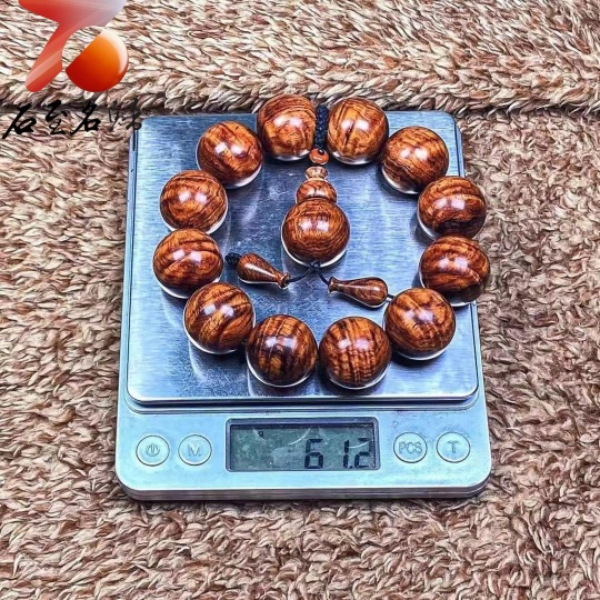 鼎藏 海南黃花梨沉水老料 黃金鳳尾水波20mm手珠 重量61.6克