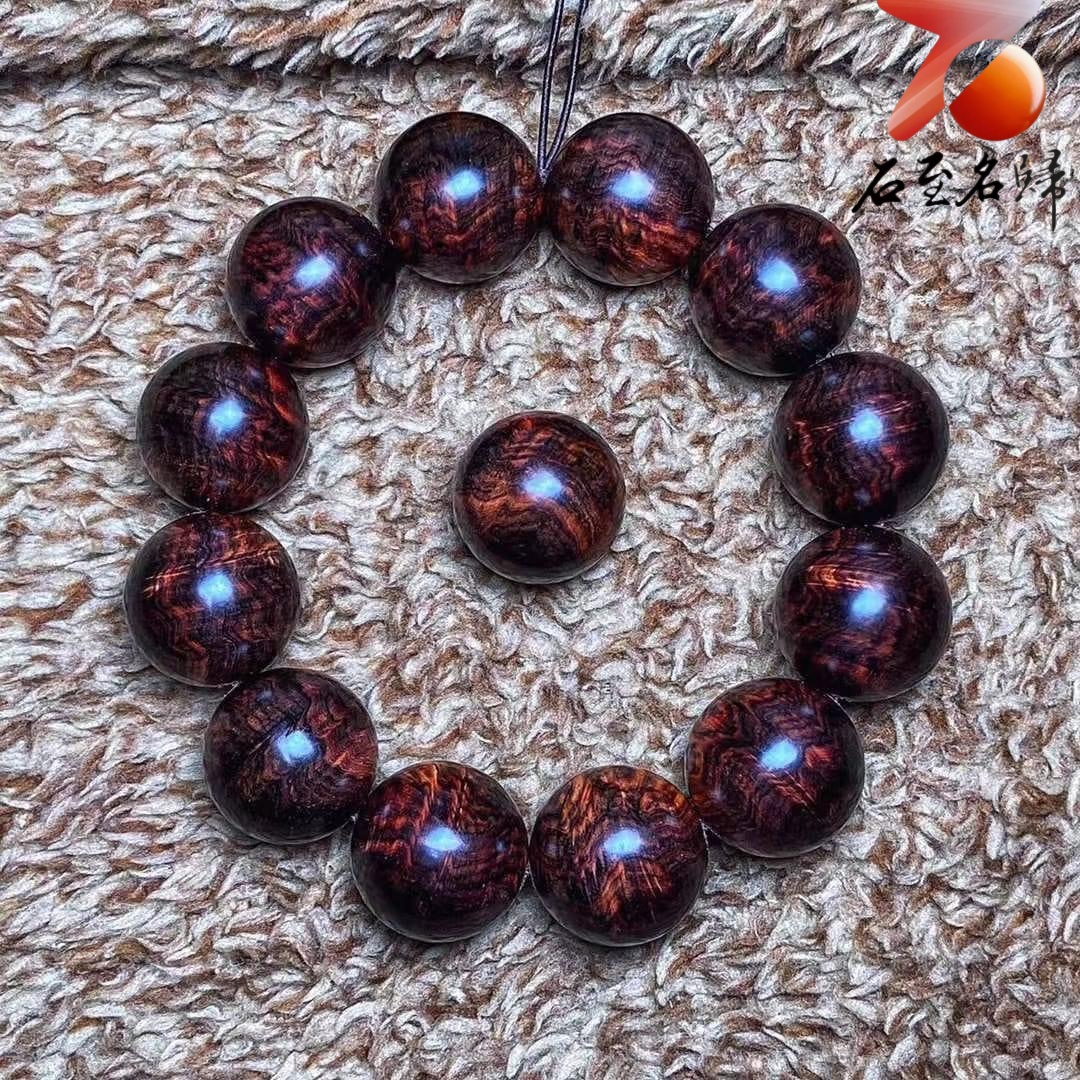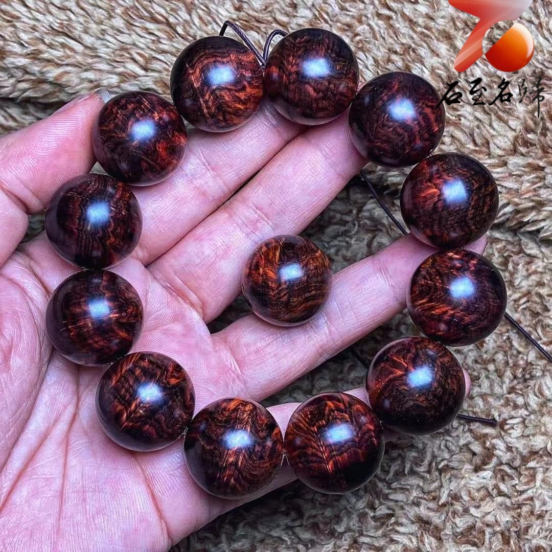 極品海南黃花梨老料 芝麻點+瘤疤花20mm手珠 重量53.7克