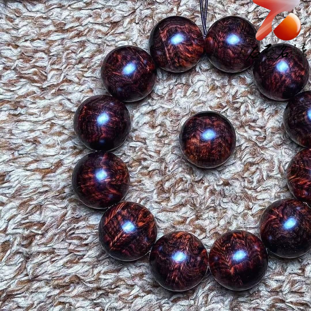 海南黃花梨紫油梨老料 水波鳳尾瘤疤花20mm手珠 重量59.4克