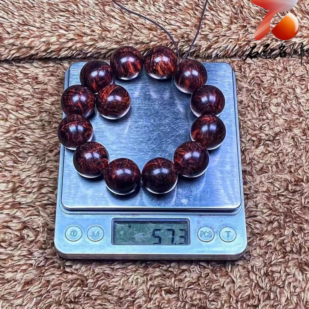 鼎藏 海南黃花梨沉水老料 鳳尾水波紋20mm手珠 重量63.1克