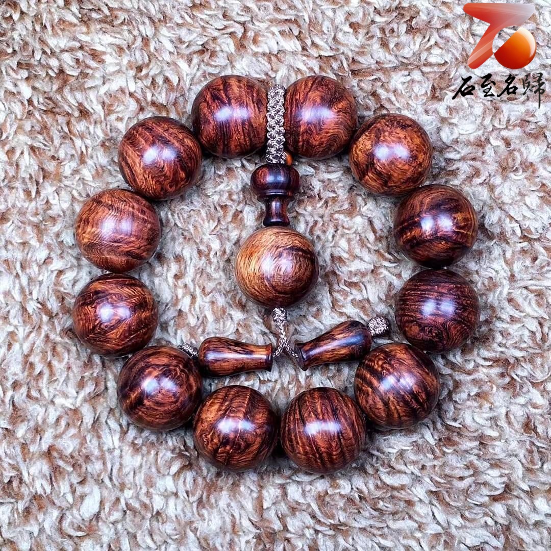鼎藏 海南黃花梨老料 鳳尾紋+瘤疤20mm手珠 重量60克
