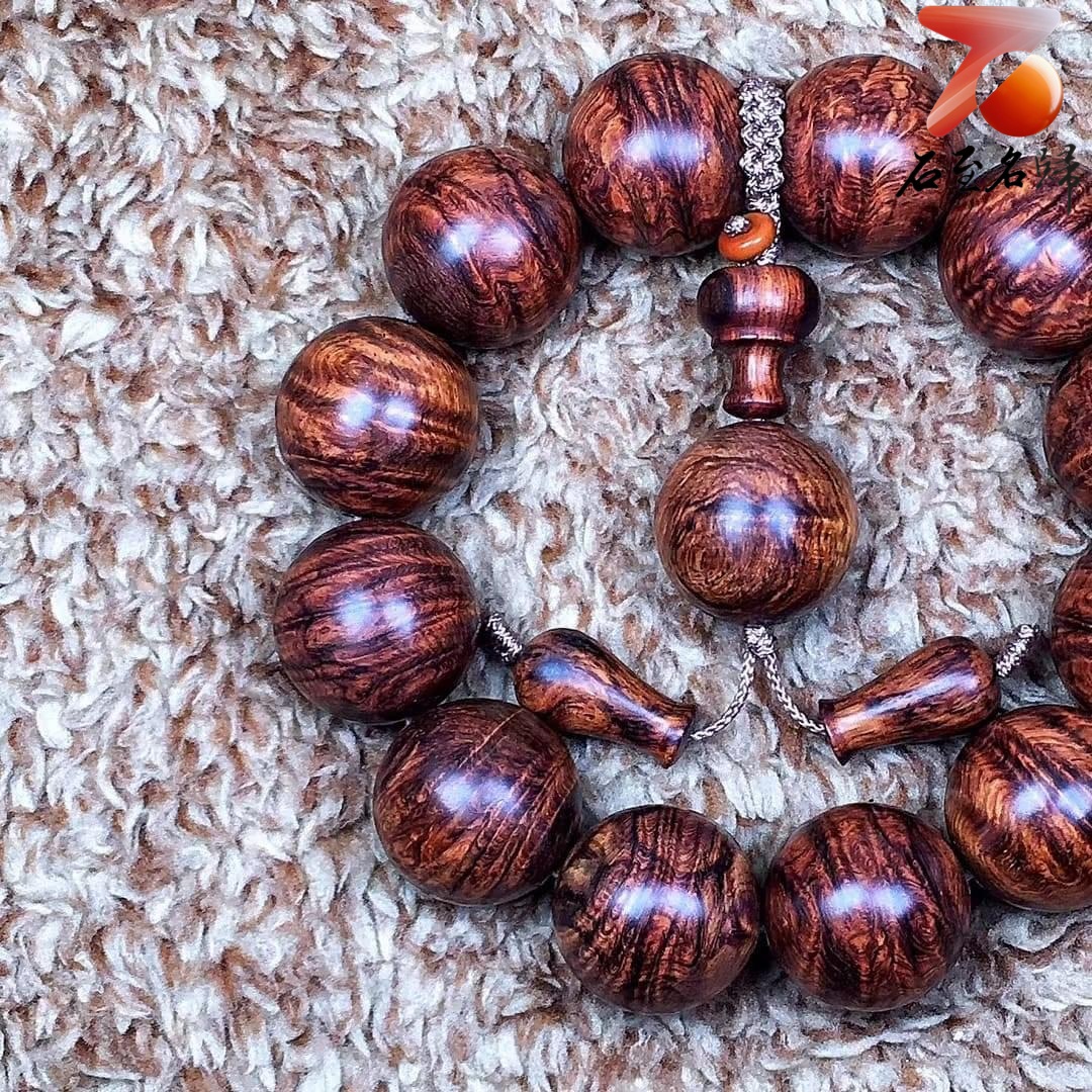 海南黃花梨紫油梨老料 水波鳳尾瘤疤花20mm手珠 重量59.4克