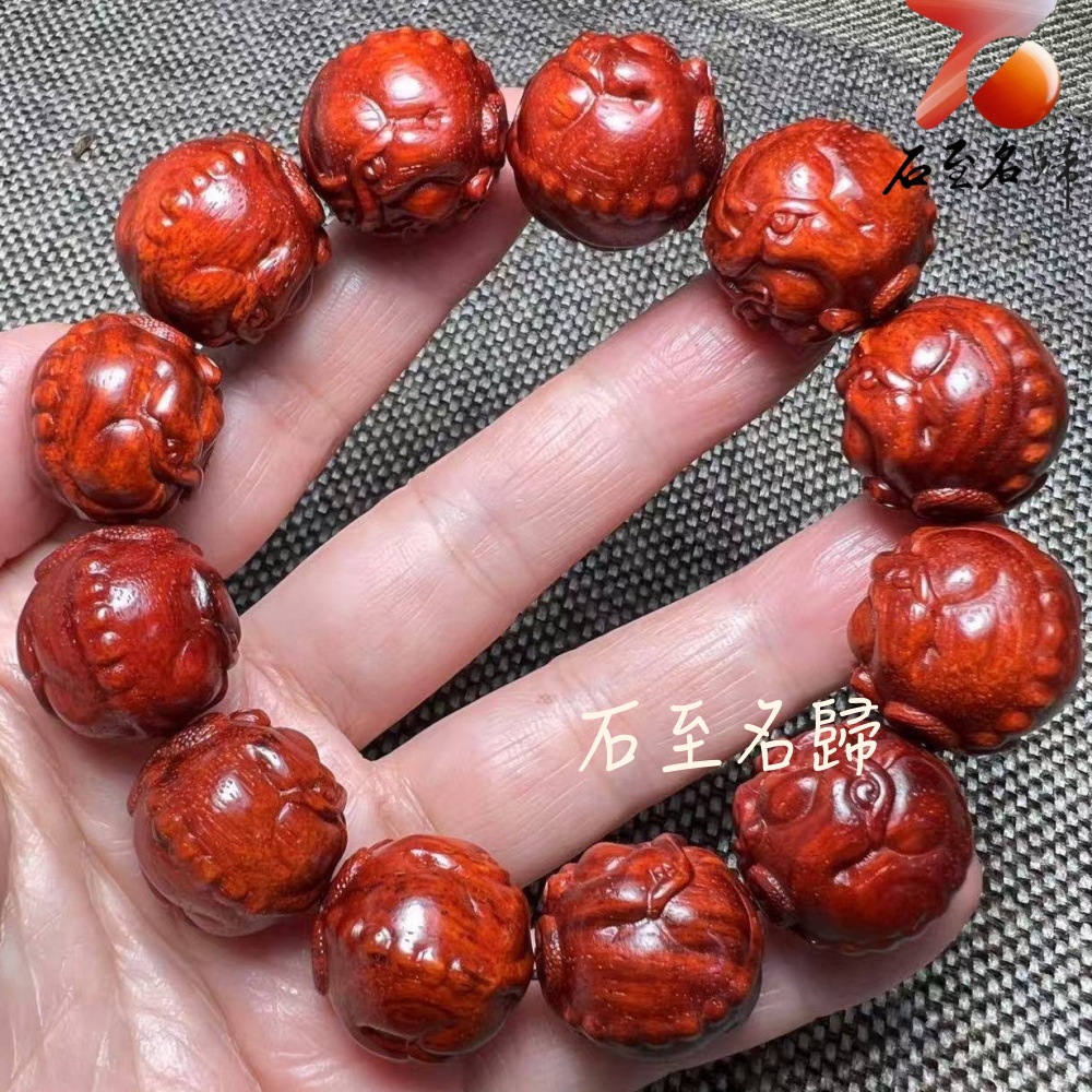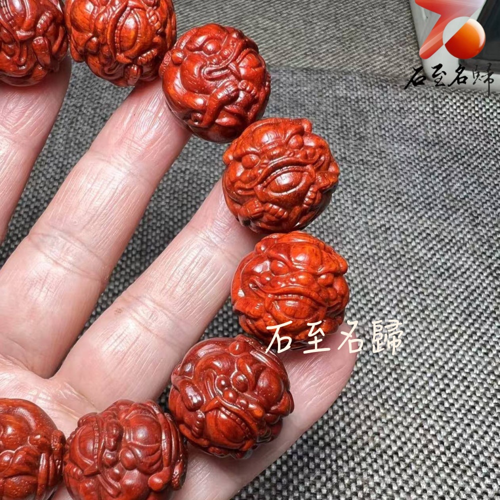 印度小葉紫檀二膘老料【招財瑞獸.有求必應20mm手珠】