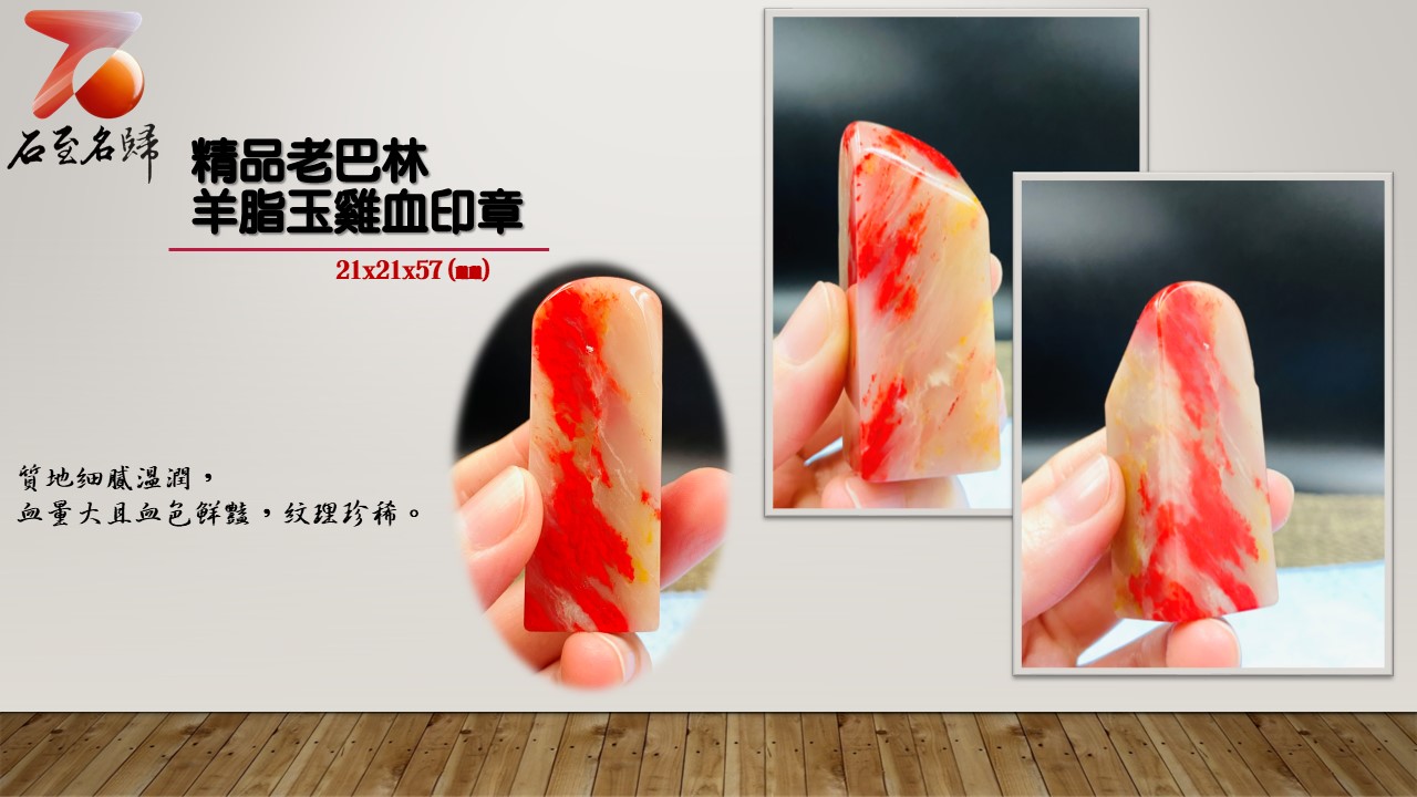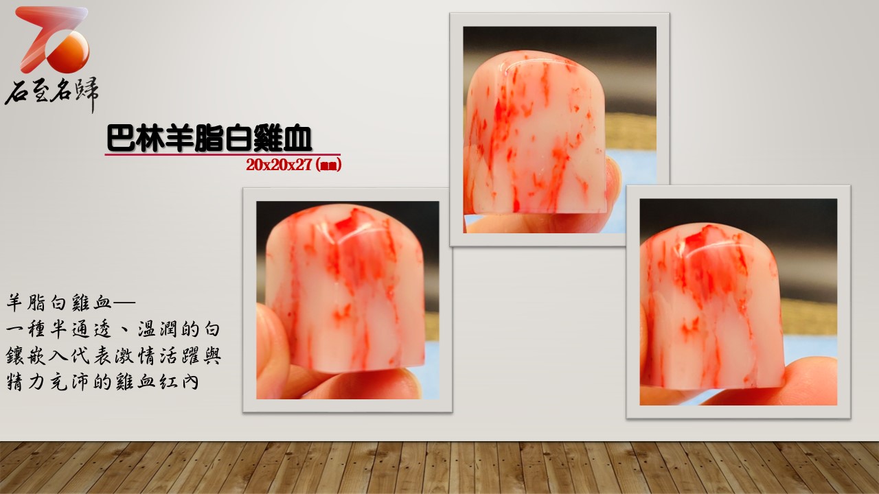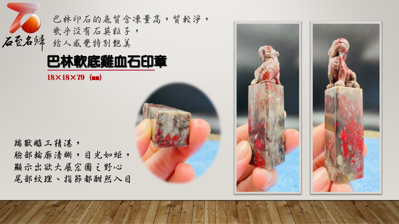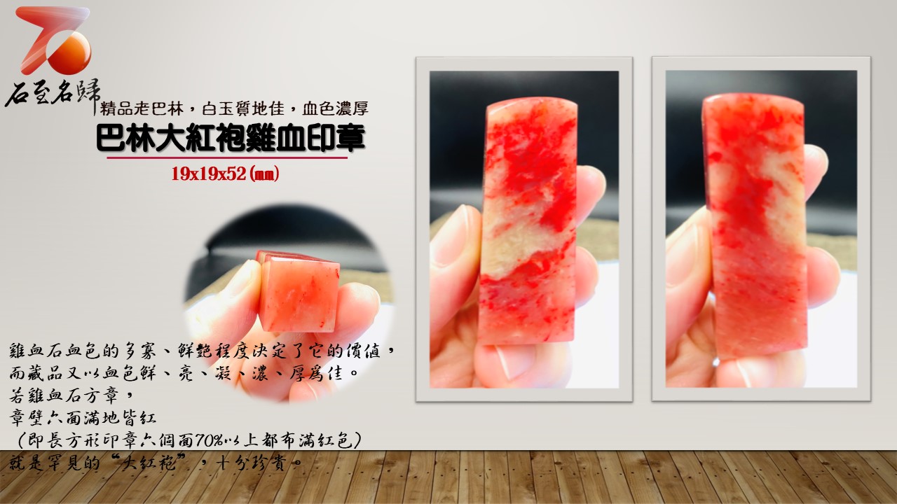 巴林雞血石印章印面1.5x1.5 高6.5公分