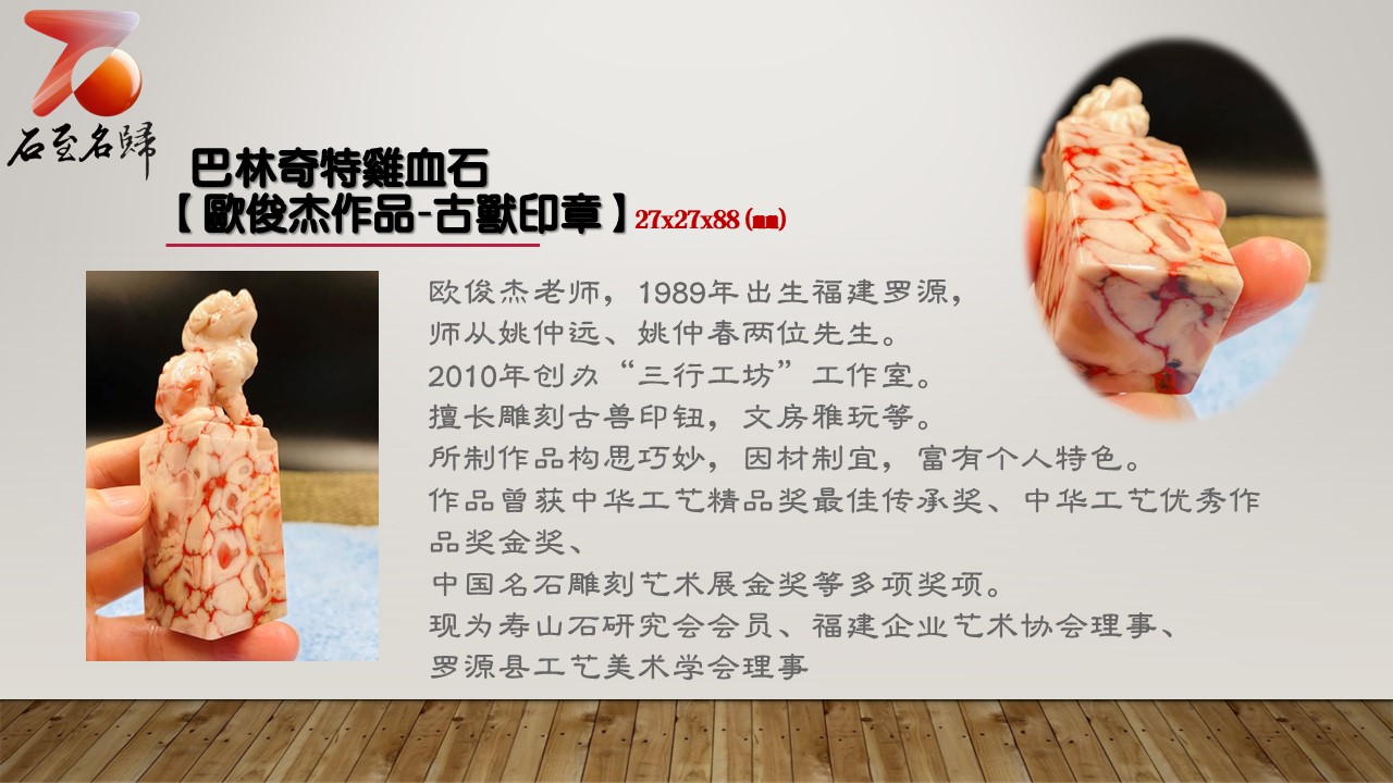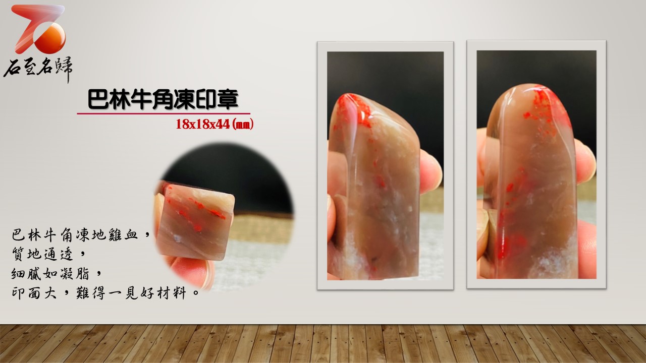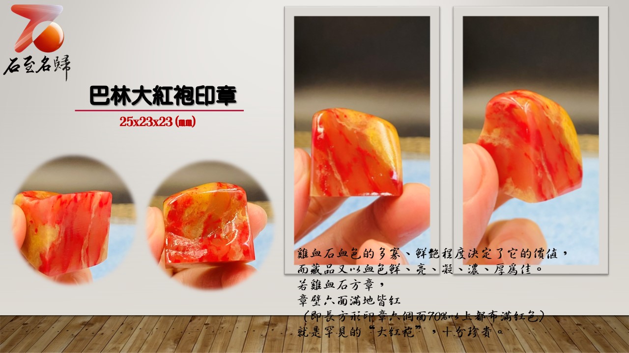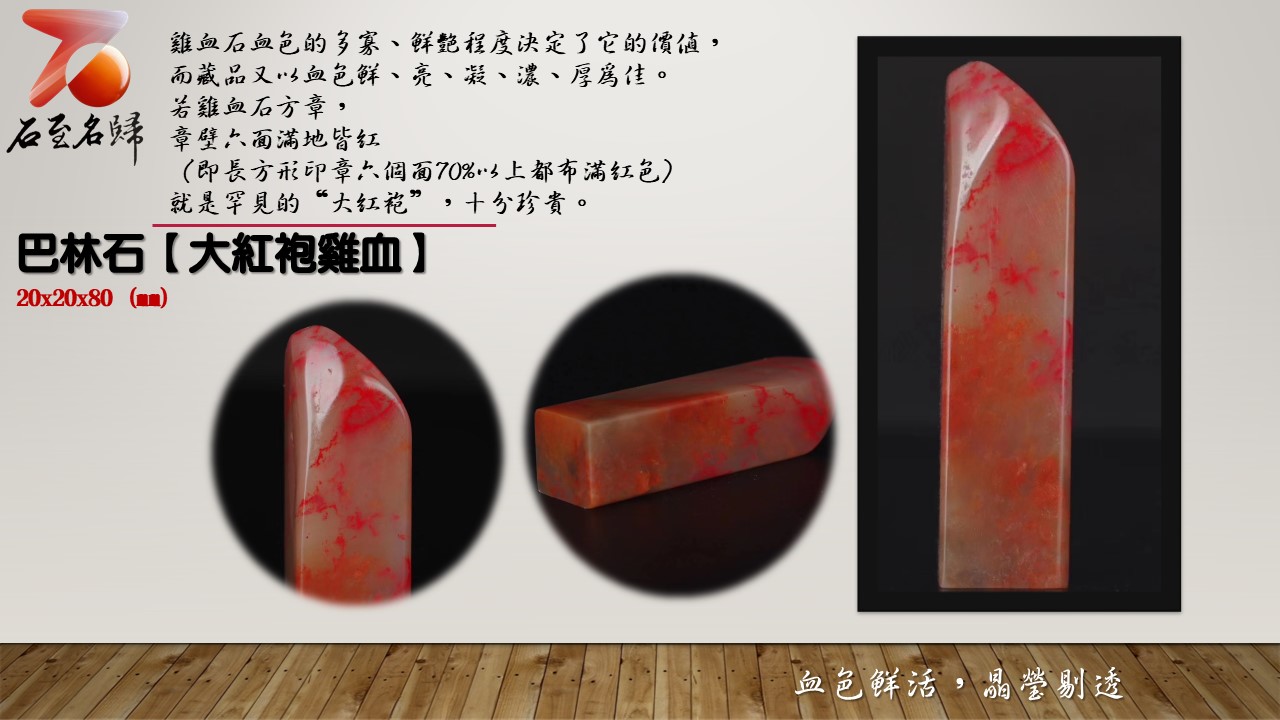 巴林雞血石印章印面1.5x1.5 高6.5公分