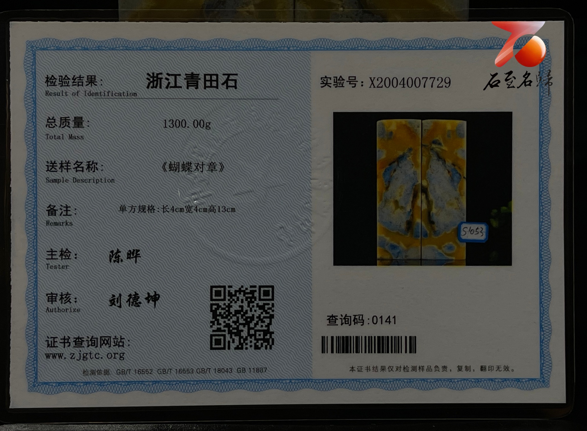 浙江青田石【蝴蝶】對章套組 附檢驗證書