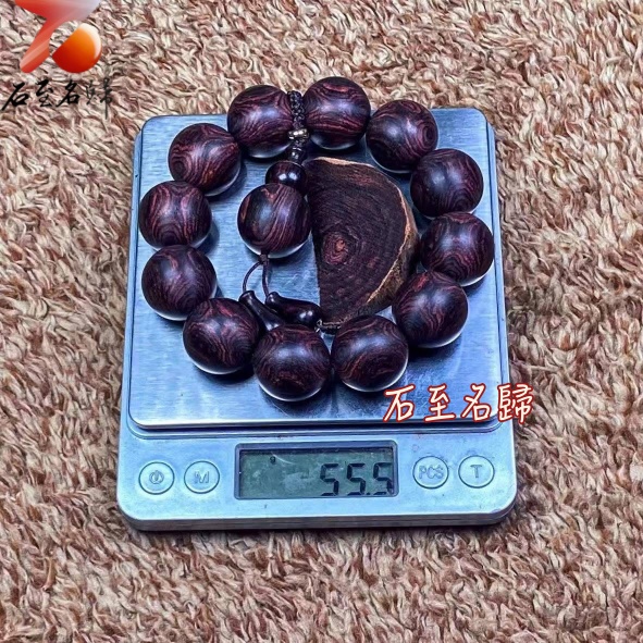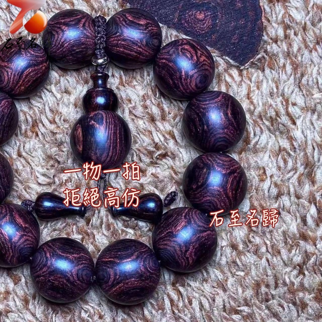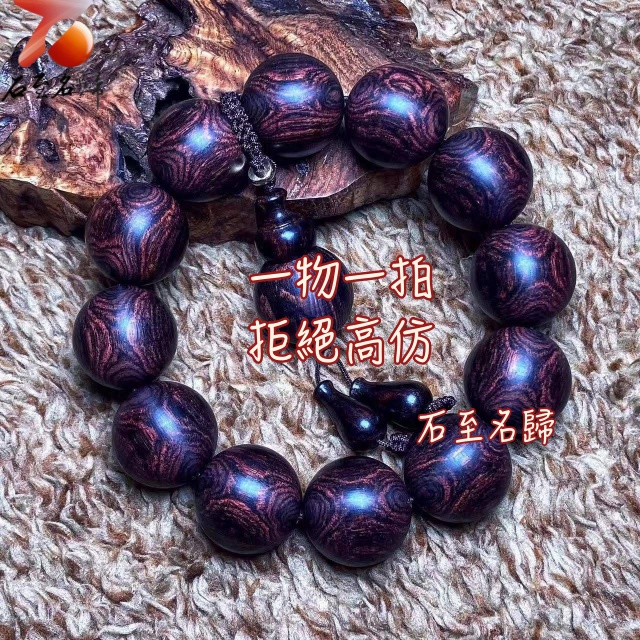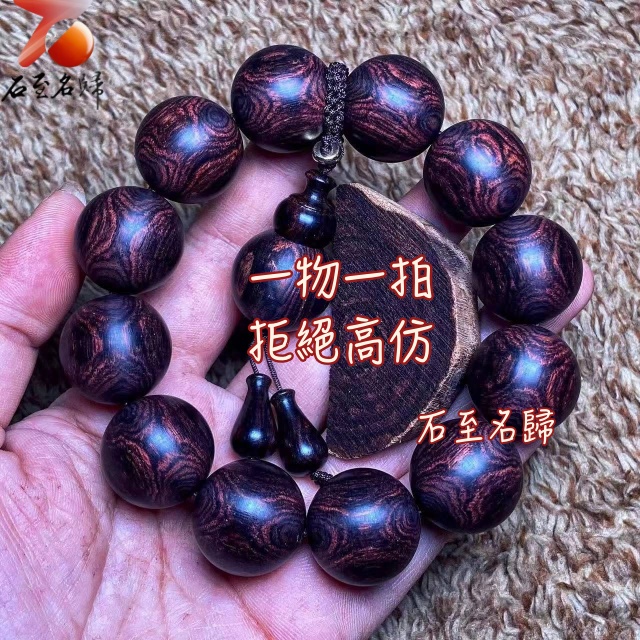 海南黃花梨 絕品紫油梨老料 超清晰蜘蛛X紋對眼鬼臉20mm手珠 重55.5克